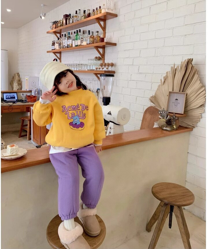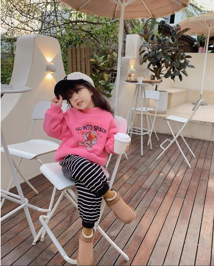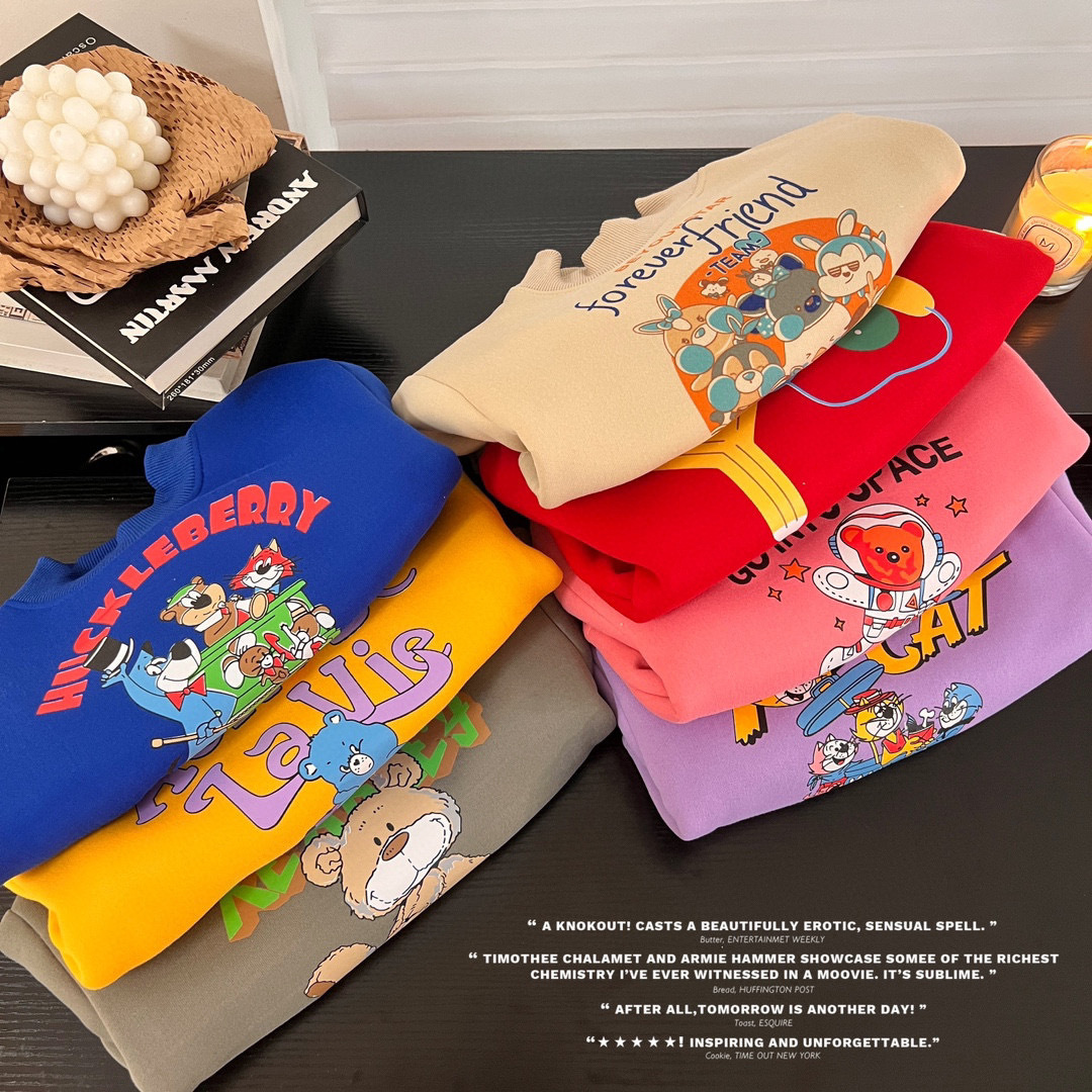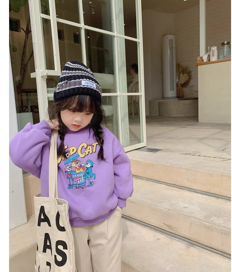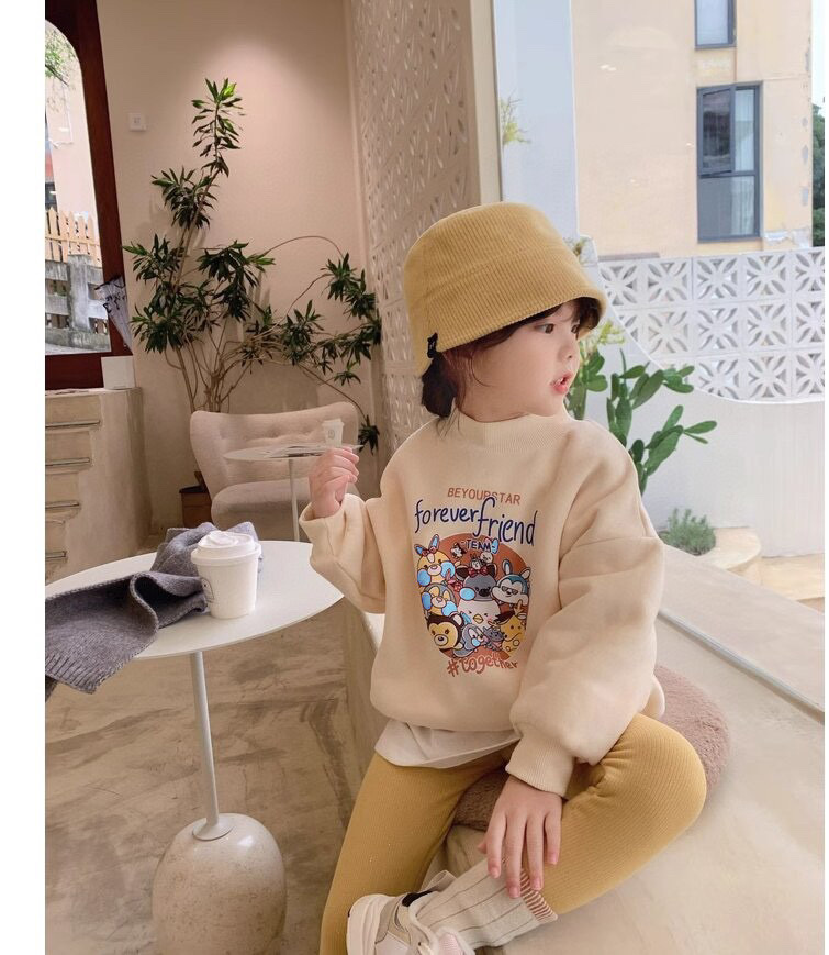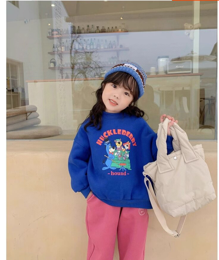 클리어런스 한국 스타일 양털 스웨트셔츠 2023 겨울 여아용 두꺼운 보온 만화 라운드넥 스웨트셔츠 어린이용스토어 가기