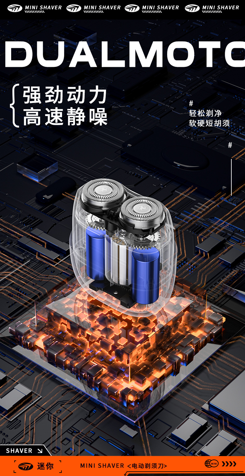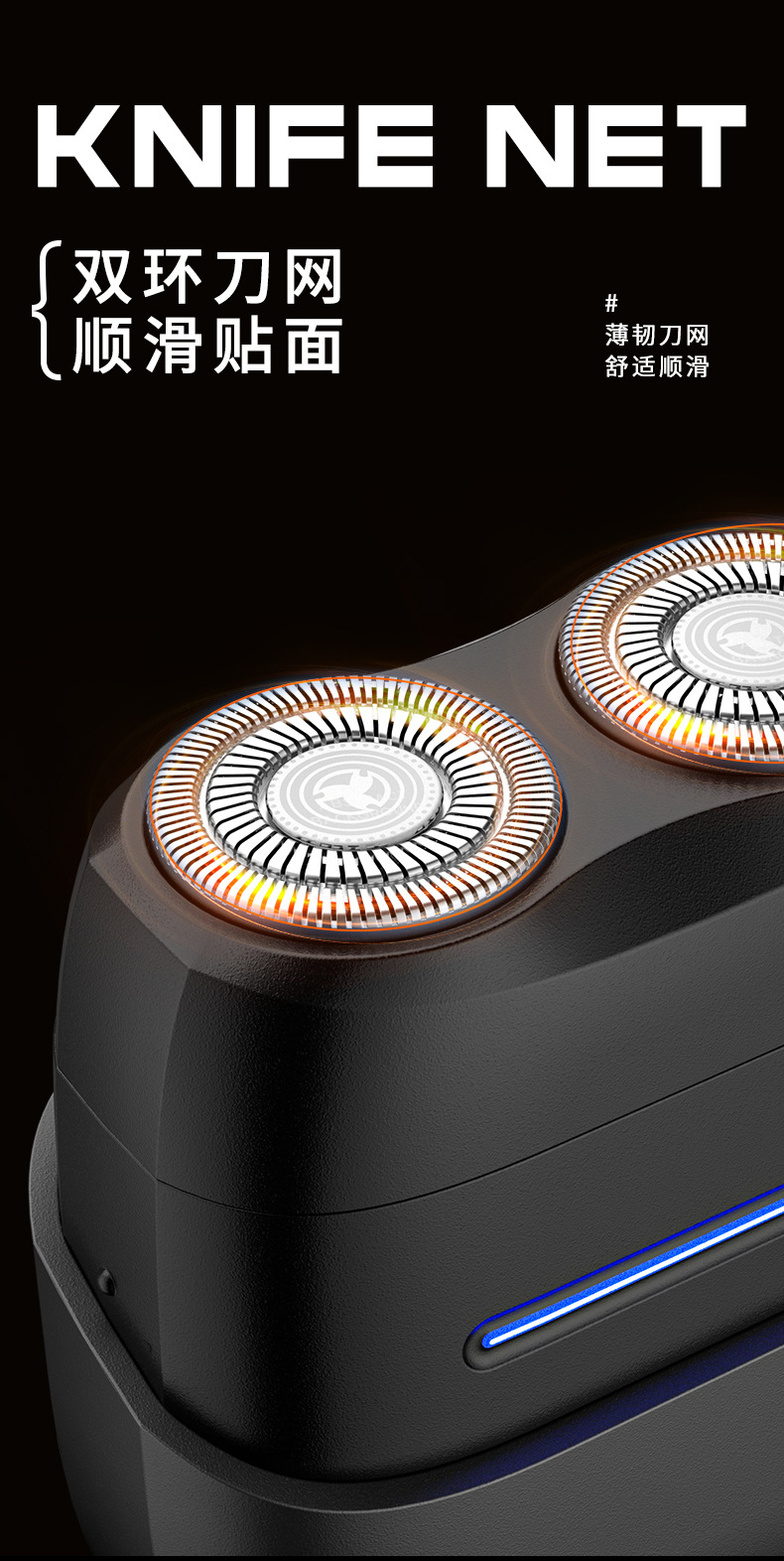 2.旋转式浮动刀头双环刀片,立体刀头结构。