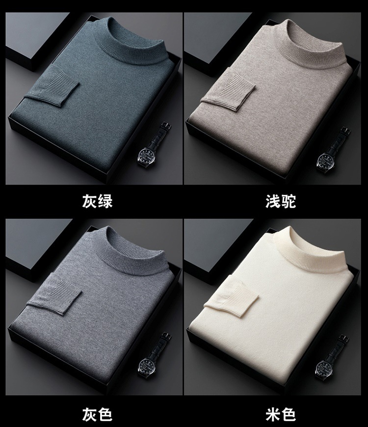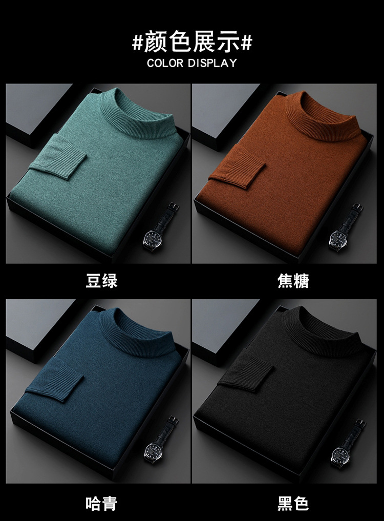 가을과 겨울 새 울 스웨터 풀오버 하프 하이 칼라 안티 필링 스웨터 남성 캐주얼 솔리드 컬러 베이스 스웨터 남성 의류