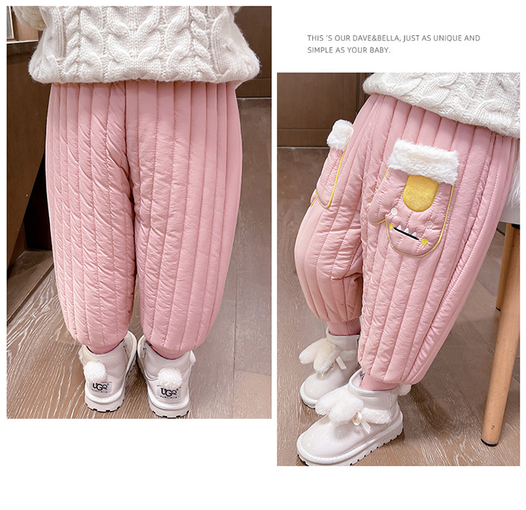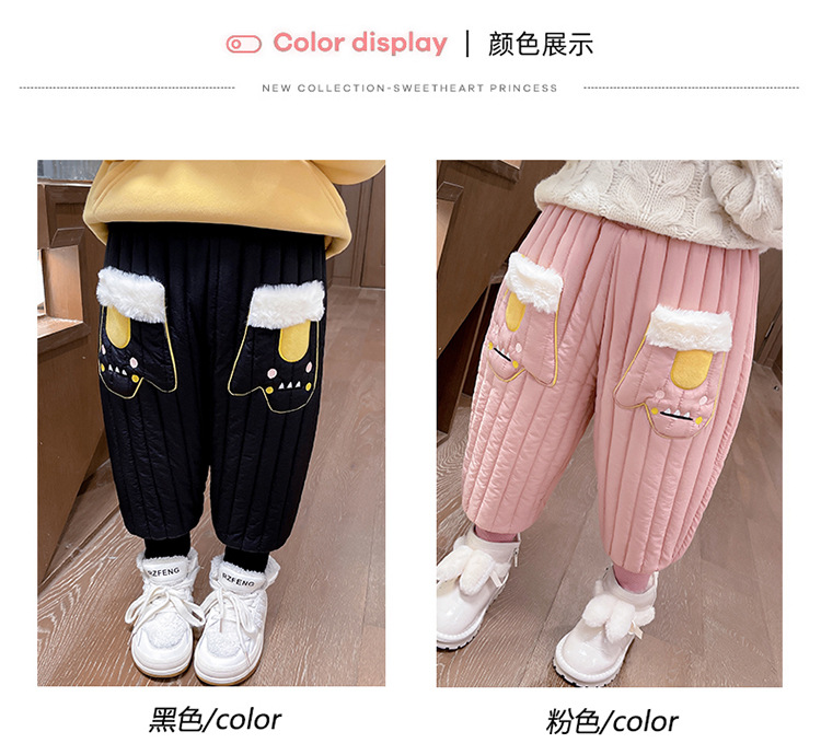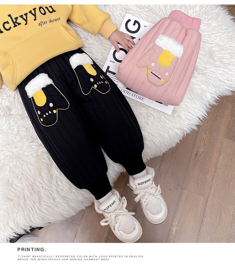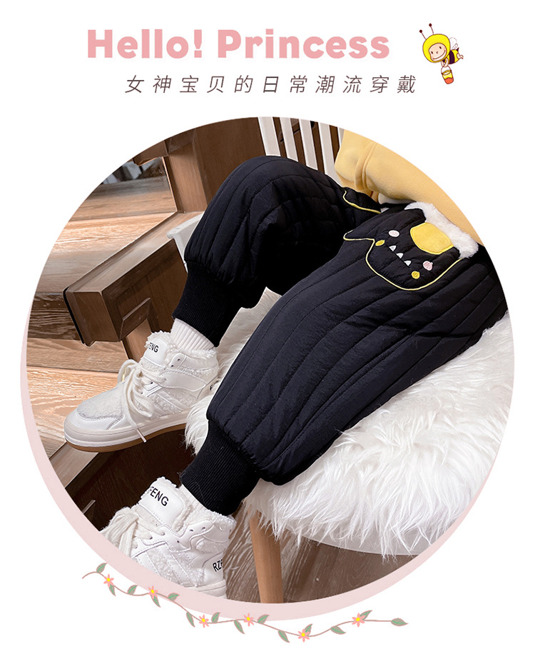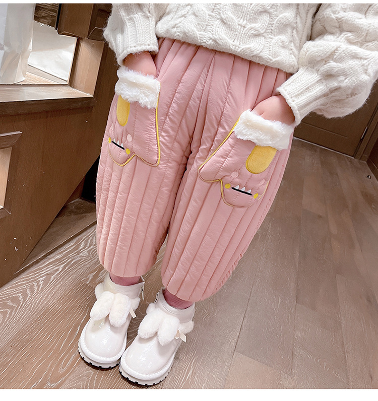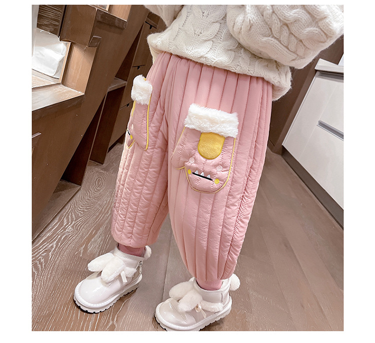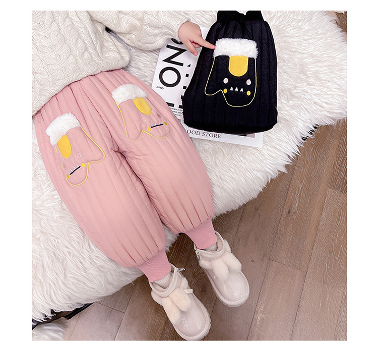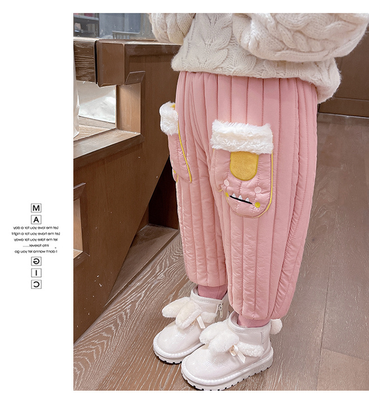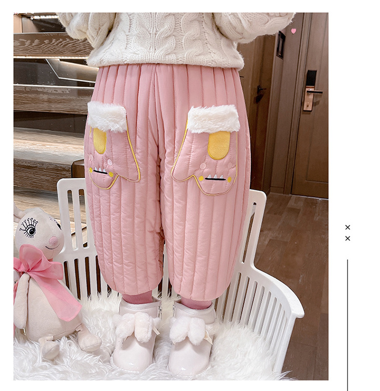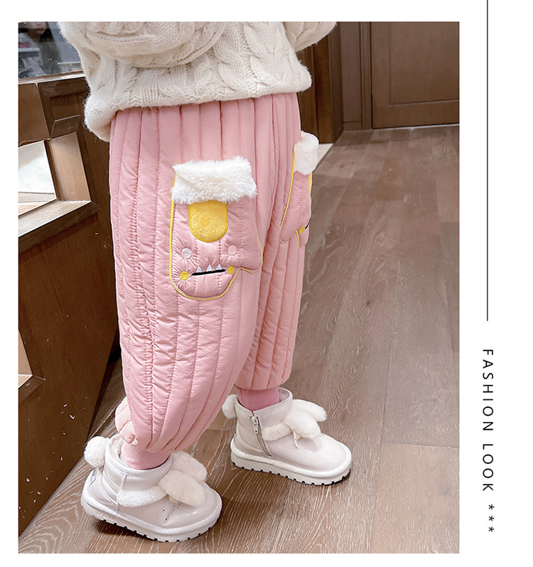 아기 소녀의 기모 면 바지 겨울 유아의 만화 자수 두꺼운 캐주얼 바지 어린이 따뜻한 겨울 긴 바지