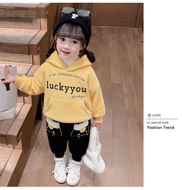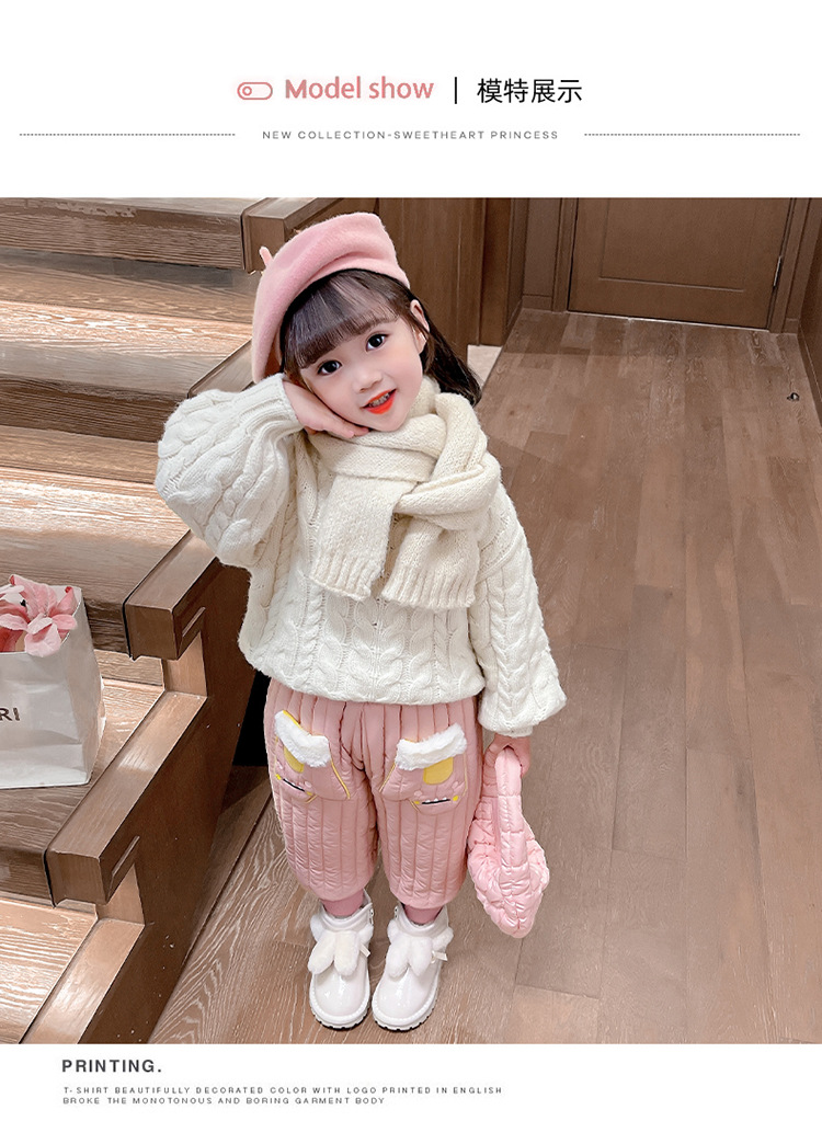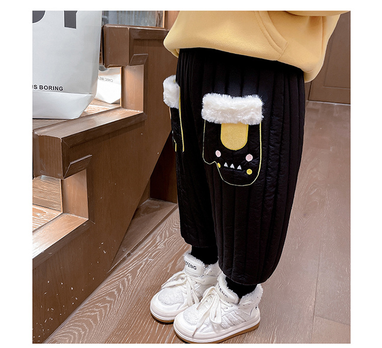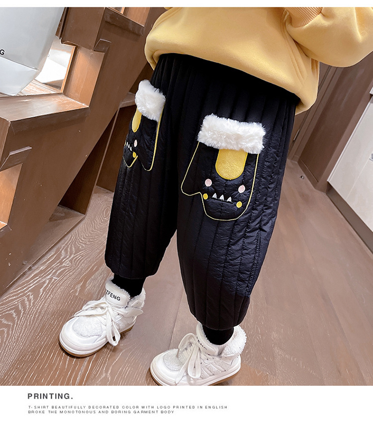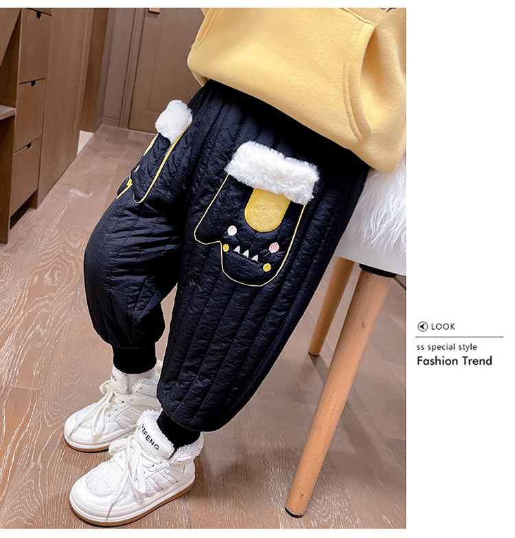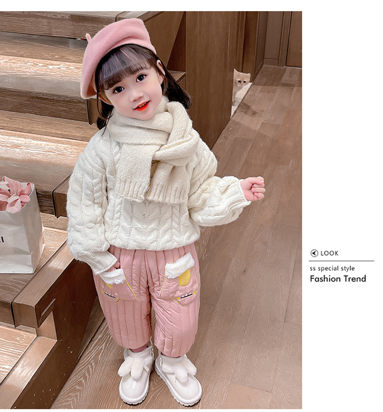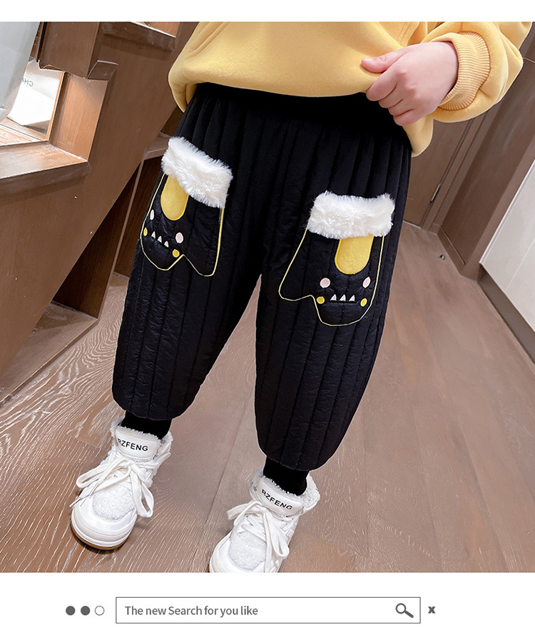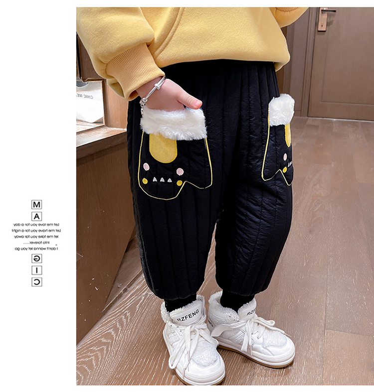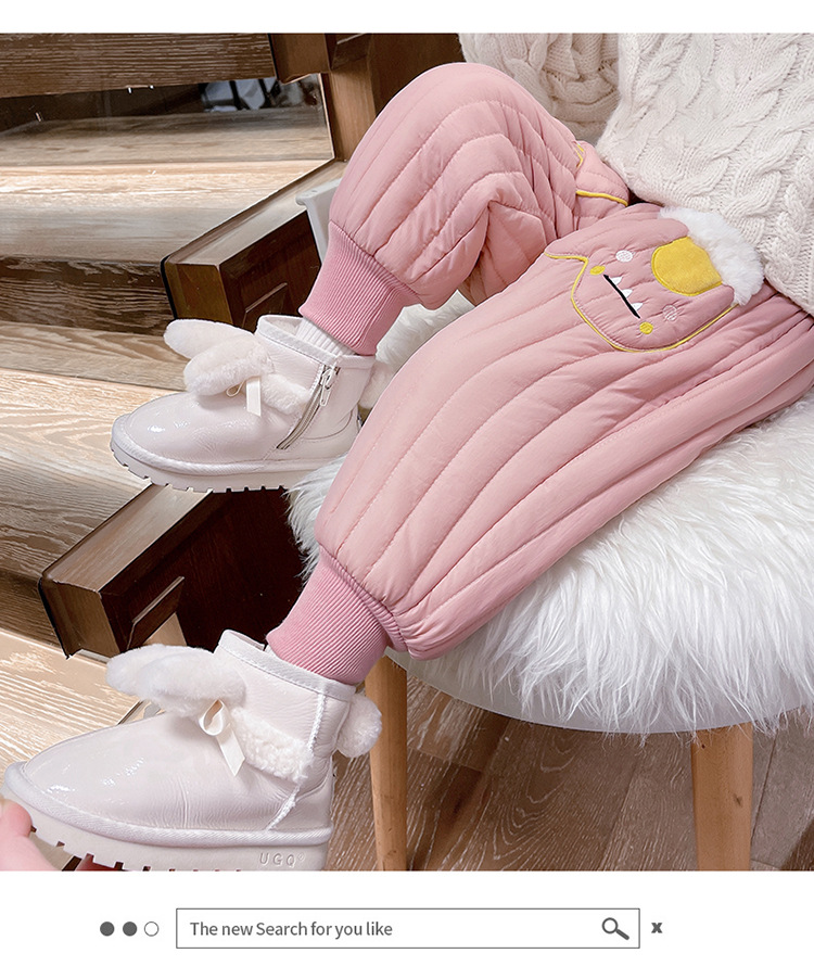아기 소녀의 기모 면 바지 겨울 유아의 만화 자수 두꺼운 캐주얼 바지 어린이 따뜻한 겨울 긴 바지