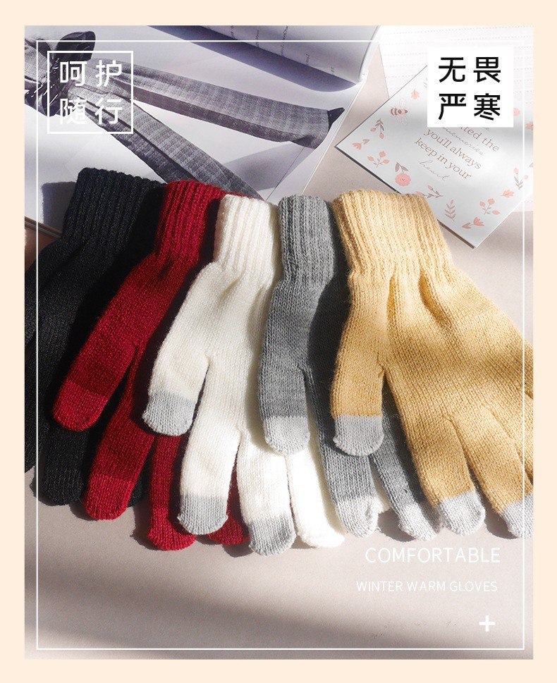 겨울 장갑 단색 니트 손가락 장갑 성인 따뜻한 장갑 승마 장갑 터치 스크린 커스텀 로고스토어 가기