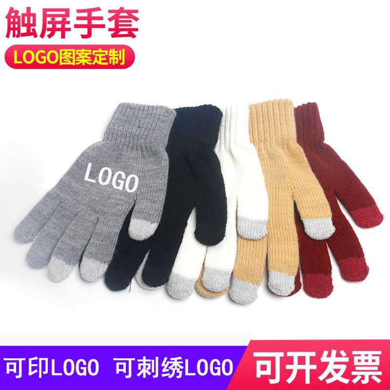 겨울 장갑 단색 니트 손가락 장갑 성인 따뜻한 장갑 승마 장갑 터치 스크린 커스텀 로고
