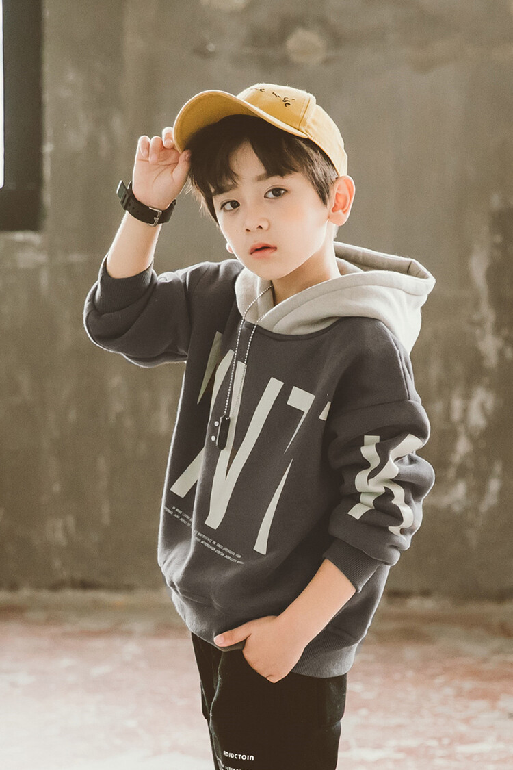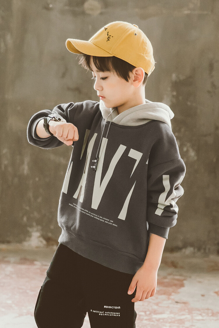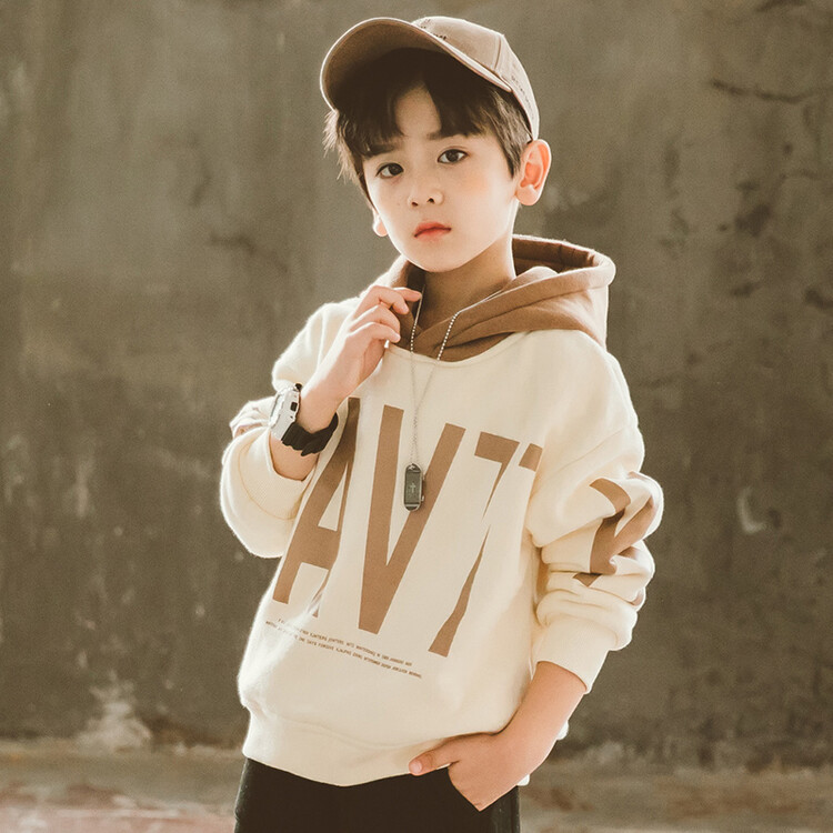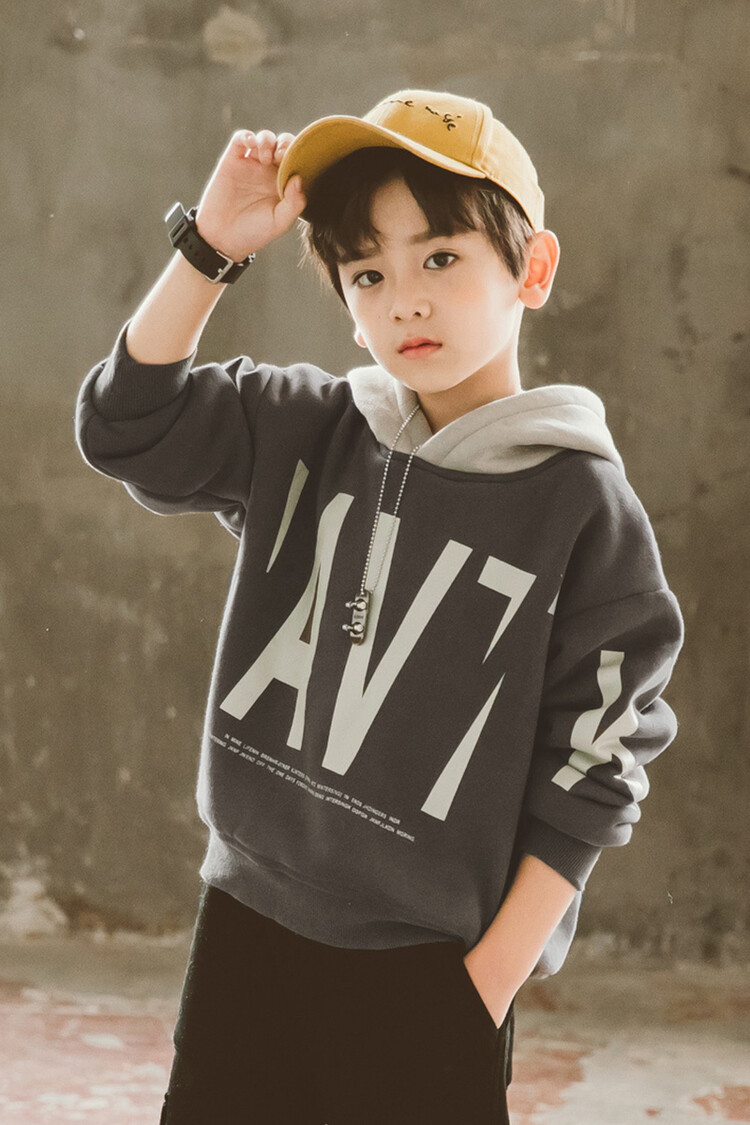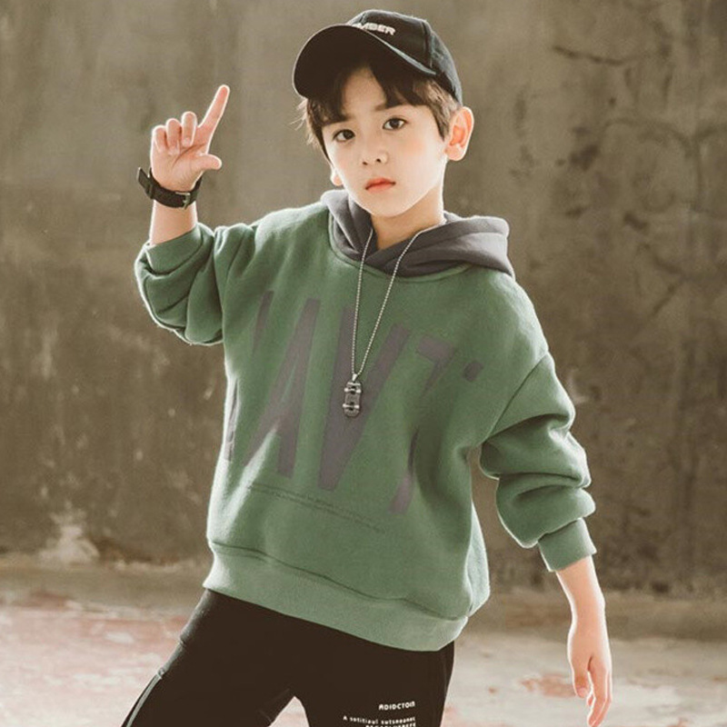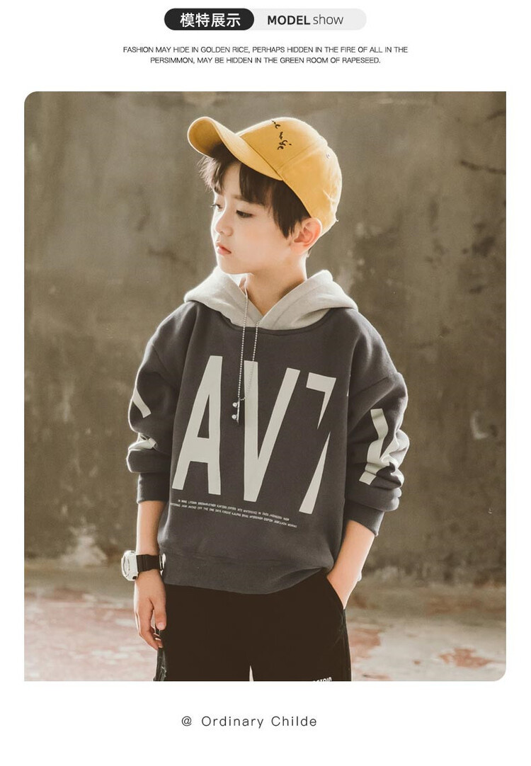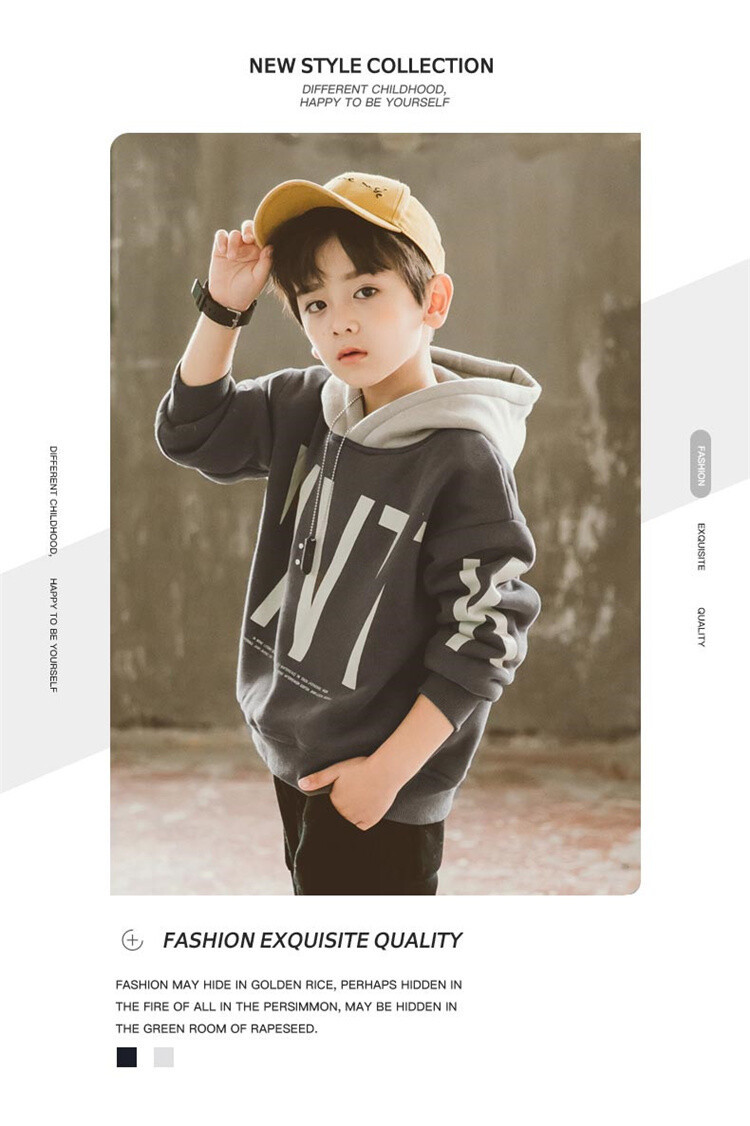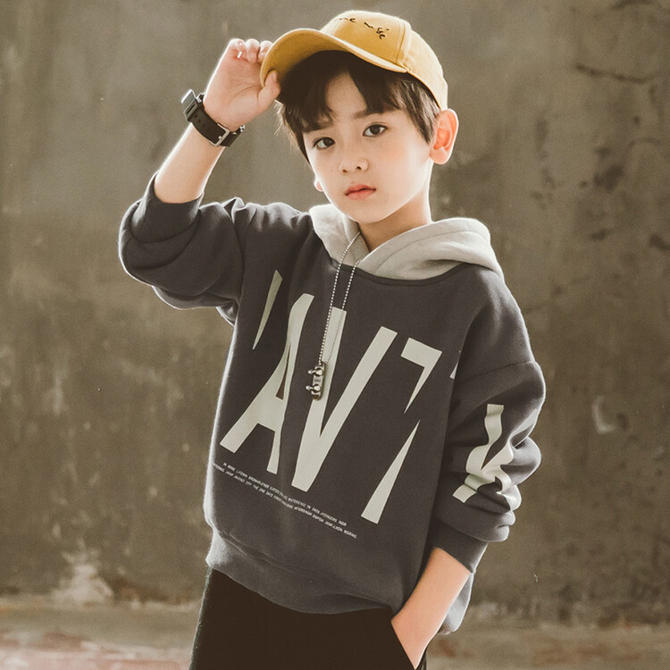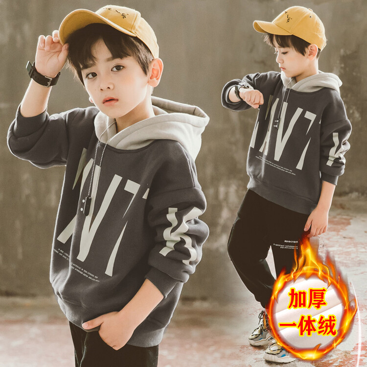 아동복 기모 땀 소년의 편지 두꺼운 후드 땀 서양 스타일 중간 및 큰 어린이를위한 긴 소매 탑 겨울 2023 유행스토어 가기