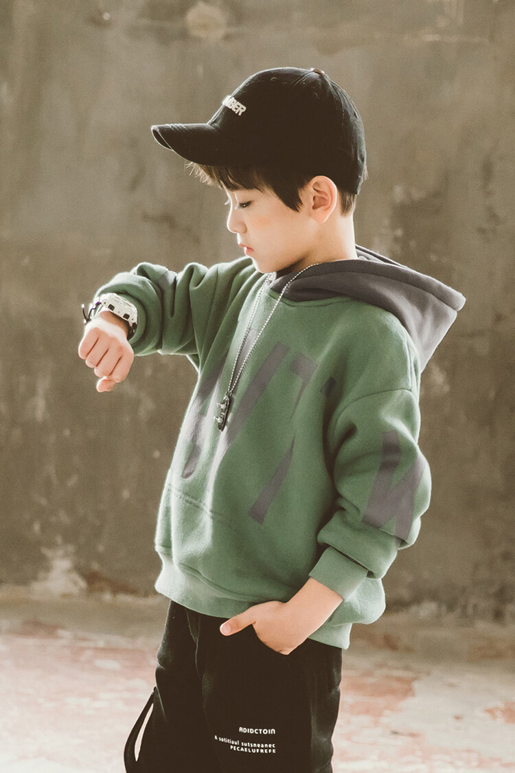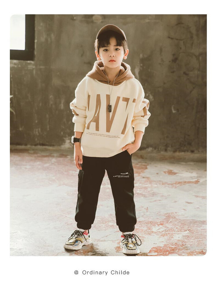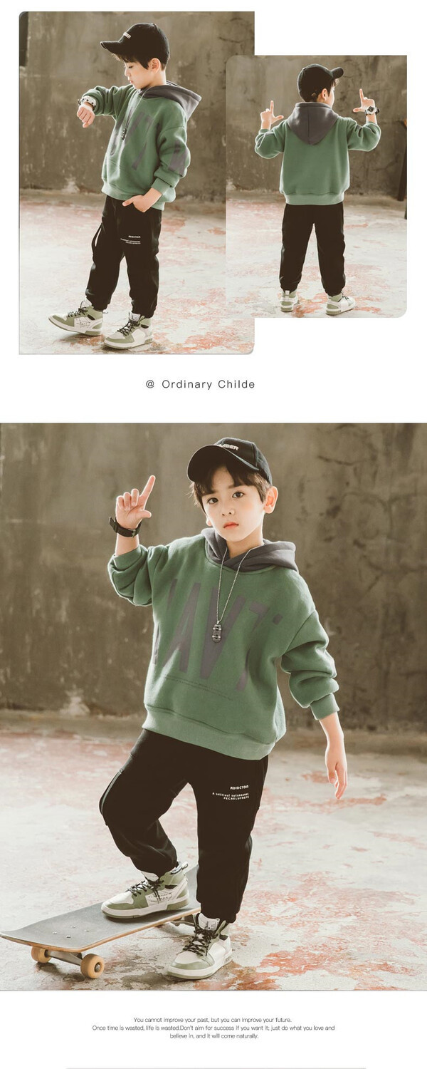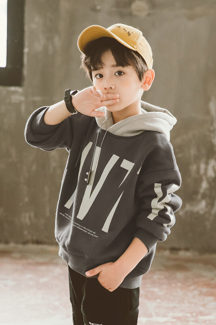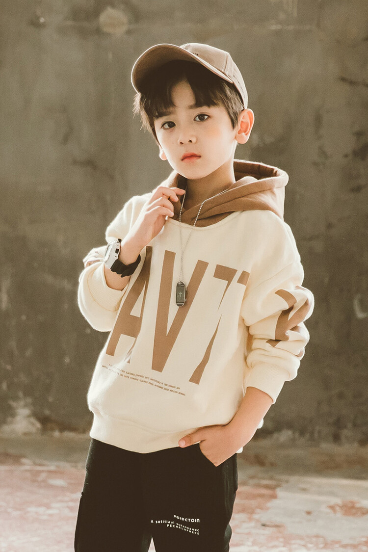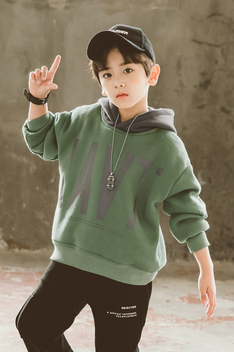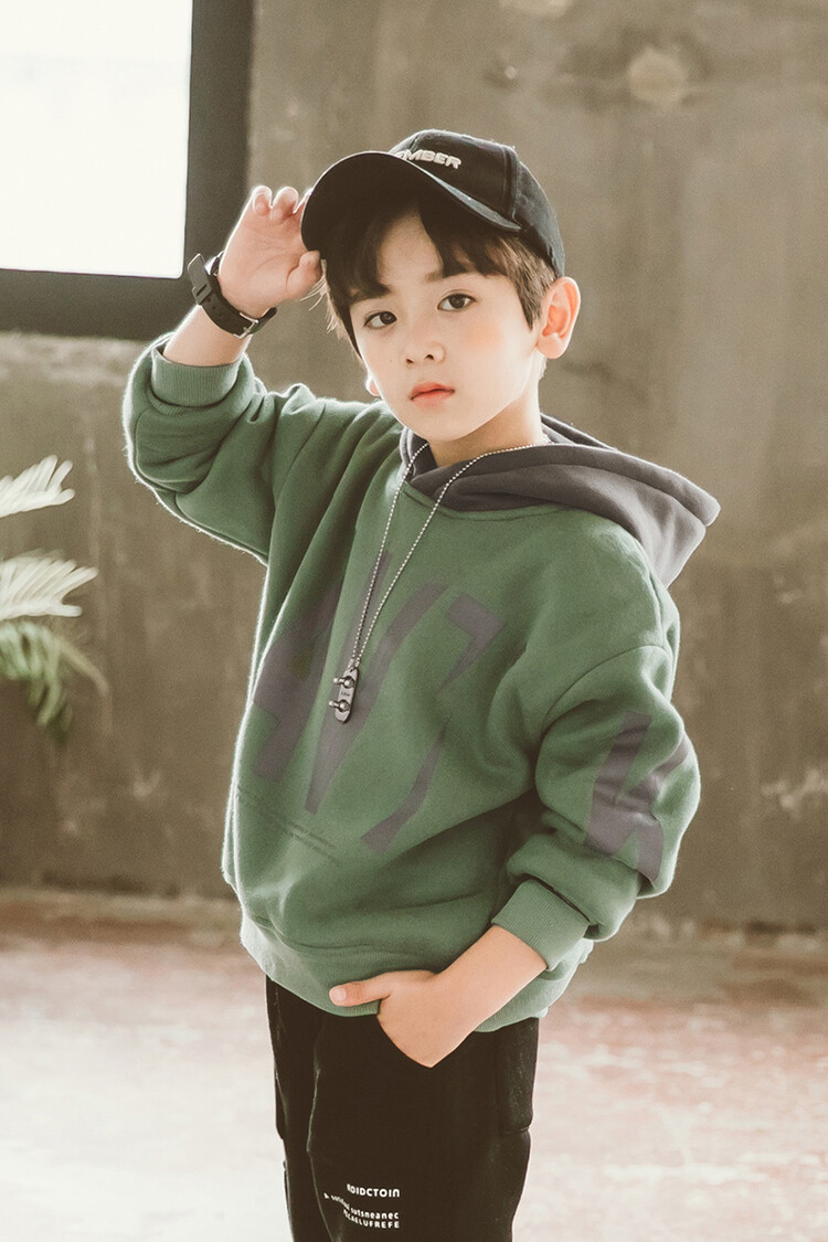 아동복 기모 땀 소년의 편지 두꺼운 후드 땀 서양 스타일 중간 및 큰 어린이를위한 긴 소매 탑 겨울 2023 유행스토어 가기