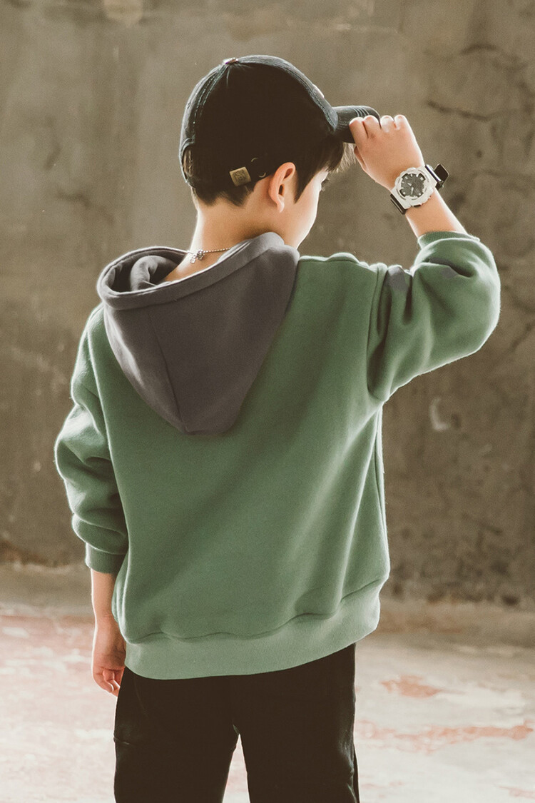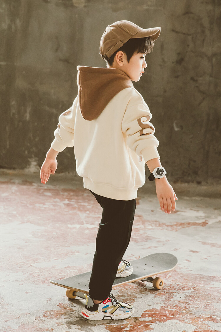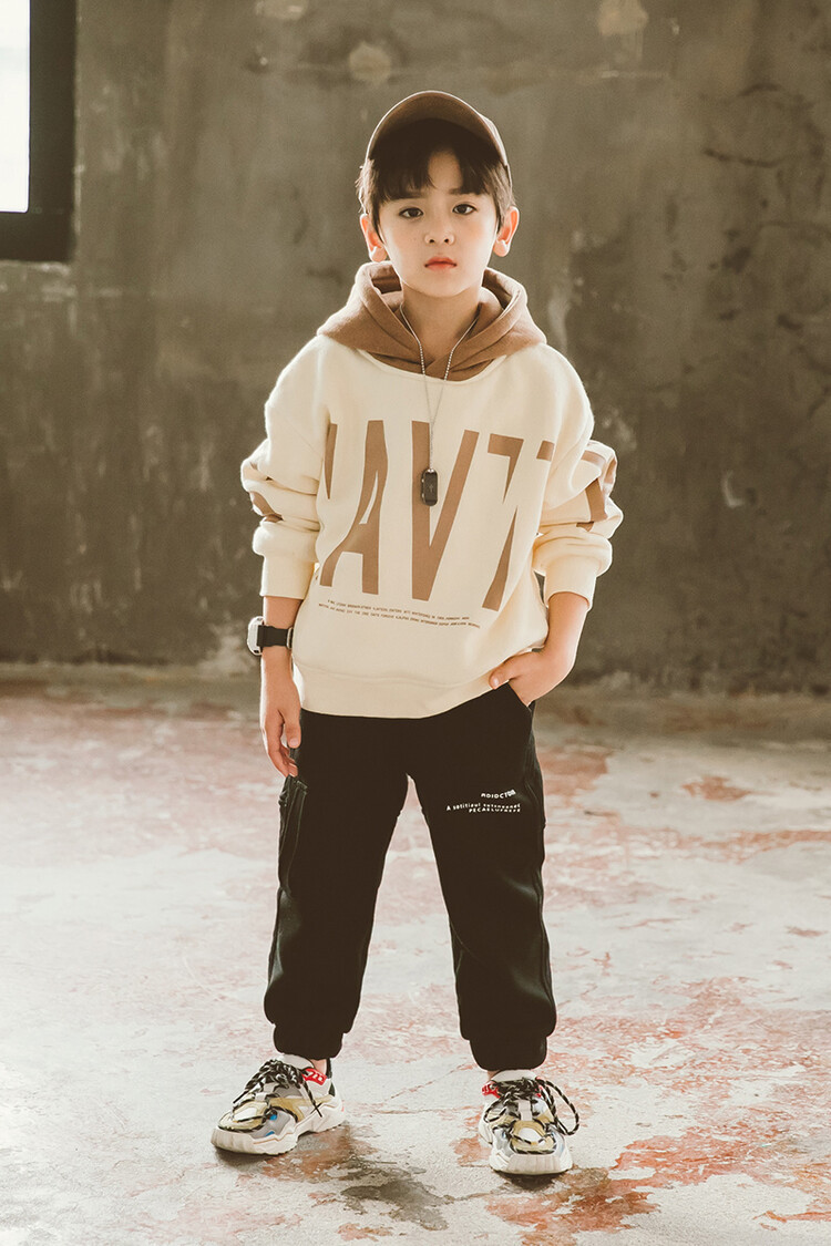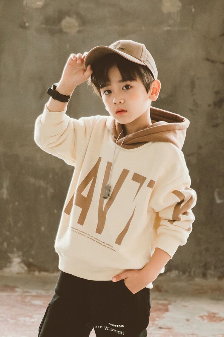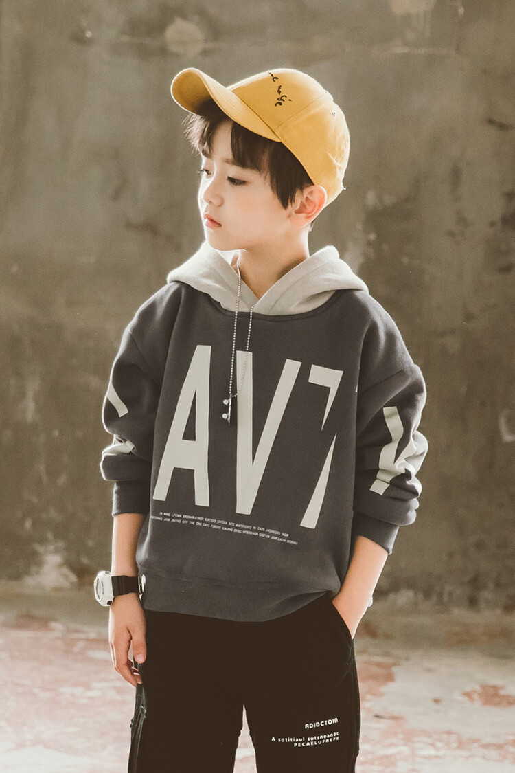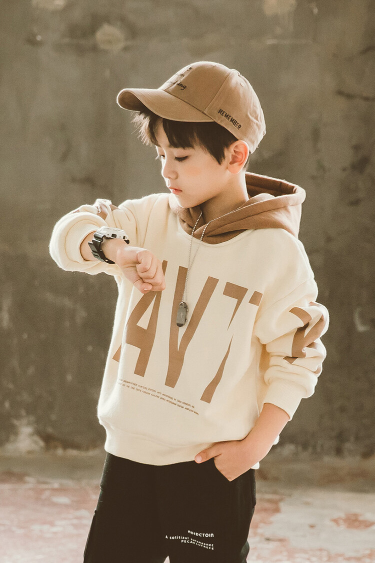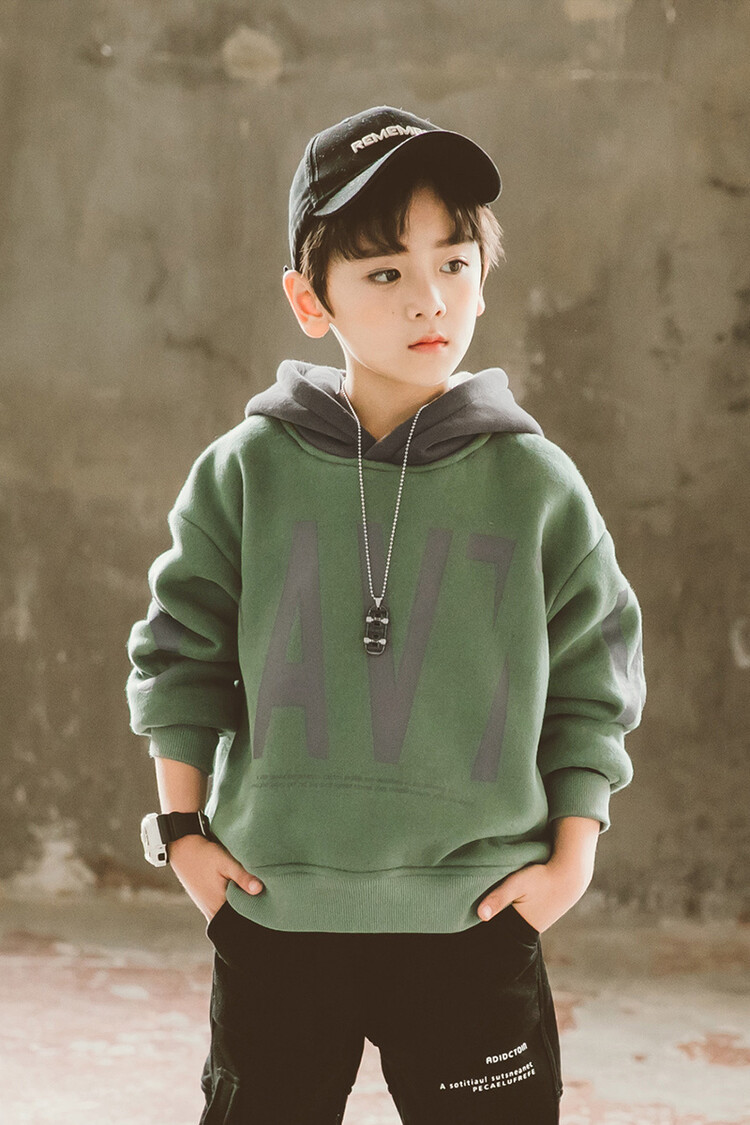 아동복 기모 땀 소년의 편지 두꺼운 후드 땀 서양 스타일 중간 및 큰 어린이를위한 긴 소매 탑 겨울 2023 유행스토어 가기