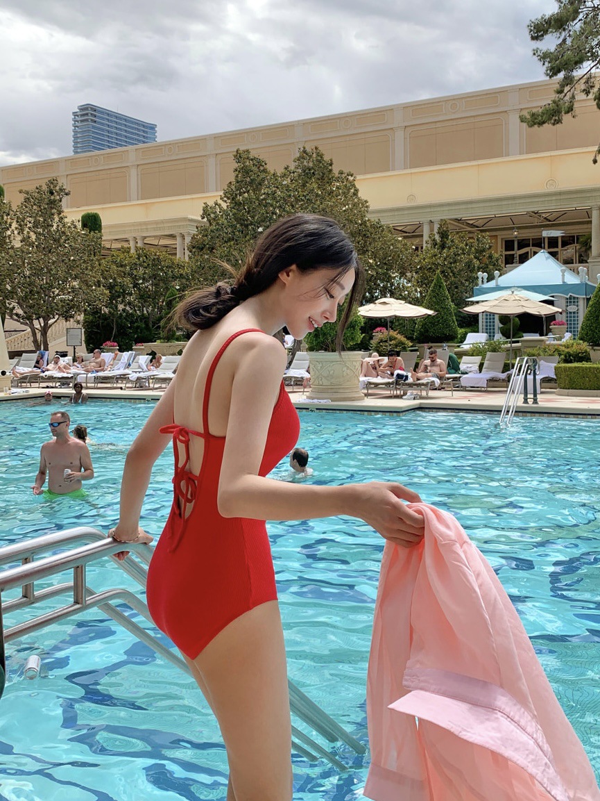 6 색] 인 스타일 한국 심플 콜드 스타일 섹시 등이없는 작은 가슴 슬림 배 덮음 온천 원피스 수영복 여성스토어 가기