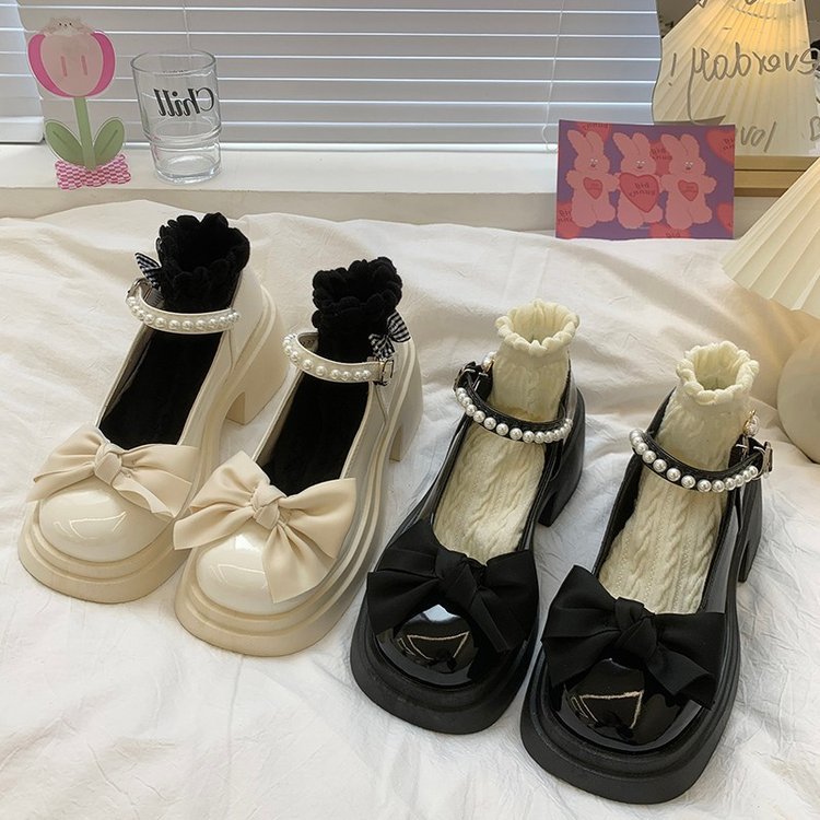 메리 제인 가죽 신발 여성의 두꺼운 바닥 2023 가을 새 달콤한 활 얕은 입 신발 버클스토어 가기