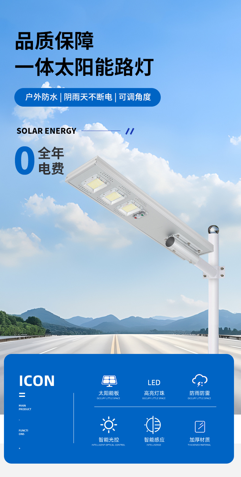 프로젝트 통합 태양 가로등 LED 밝은 전원 도로 리모콘 도입 태양 가로등