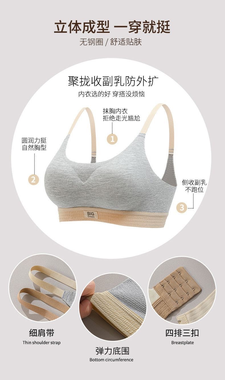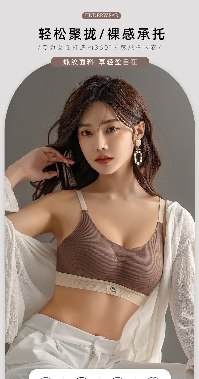 작은 가슴 푸시 업 비 스틸 링 피부 친화적 실 심리스 속옷 처짐 방지 사이드 클로징 트렌디 캐주얼 스포츠 브라 브라