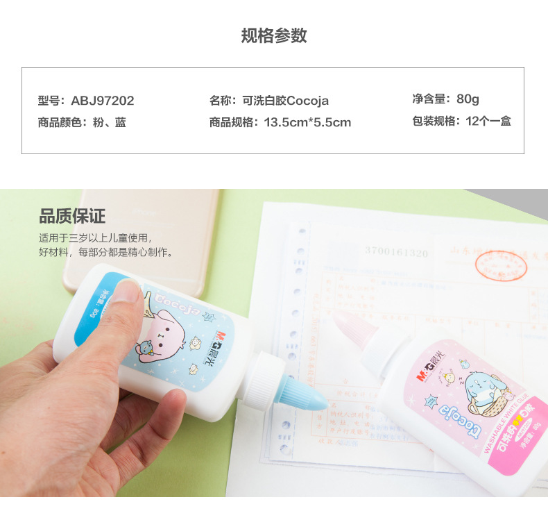 Chenguang ABJ97202 액체 접착제 80g 빨 흰색 접착제 초등학교 유치원 어린이 학생 수제 사무실스토어 가기
