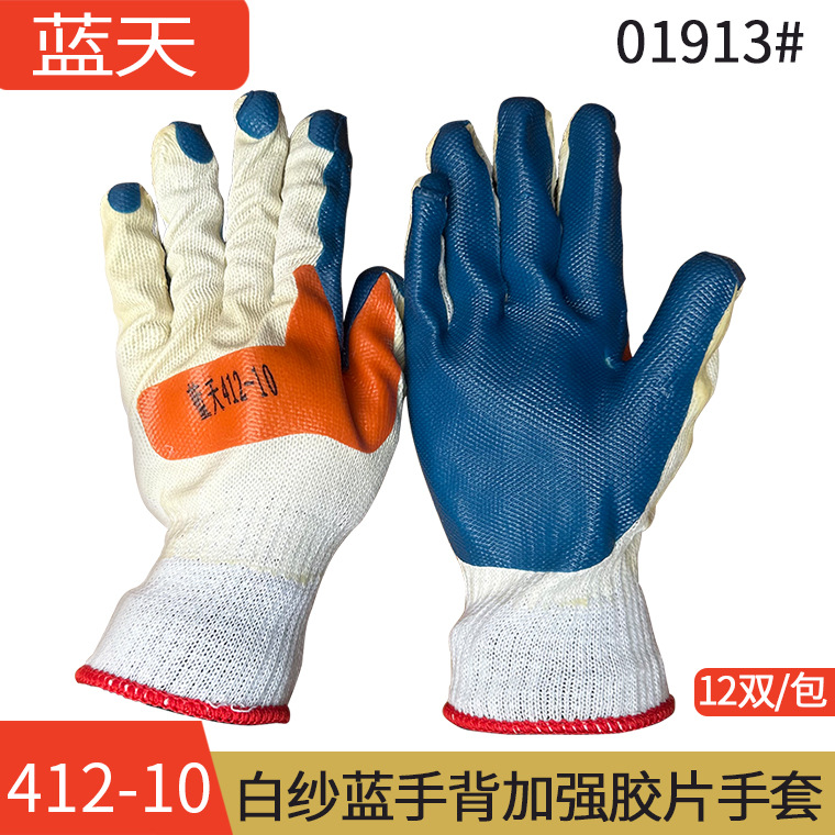 Blue Sky 412-10 흰색 거즈 파란색 필름 장갑 두꺼운 손등 붙박이 빨간색 고무 미끄럼 방지 내마모성 장갑