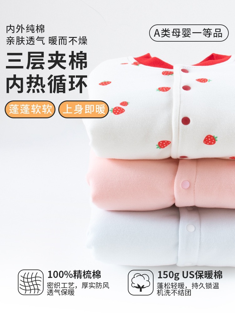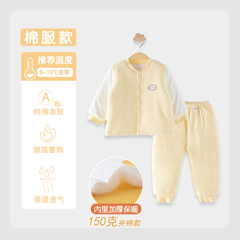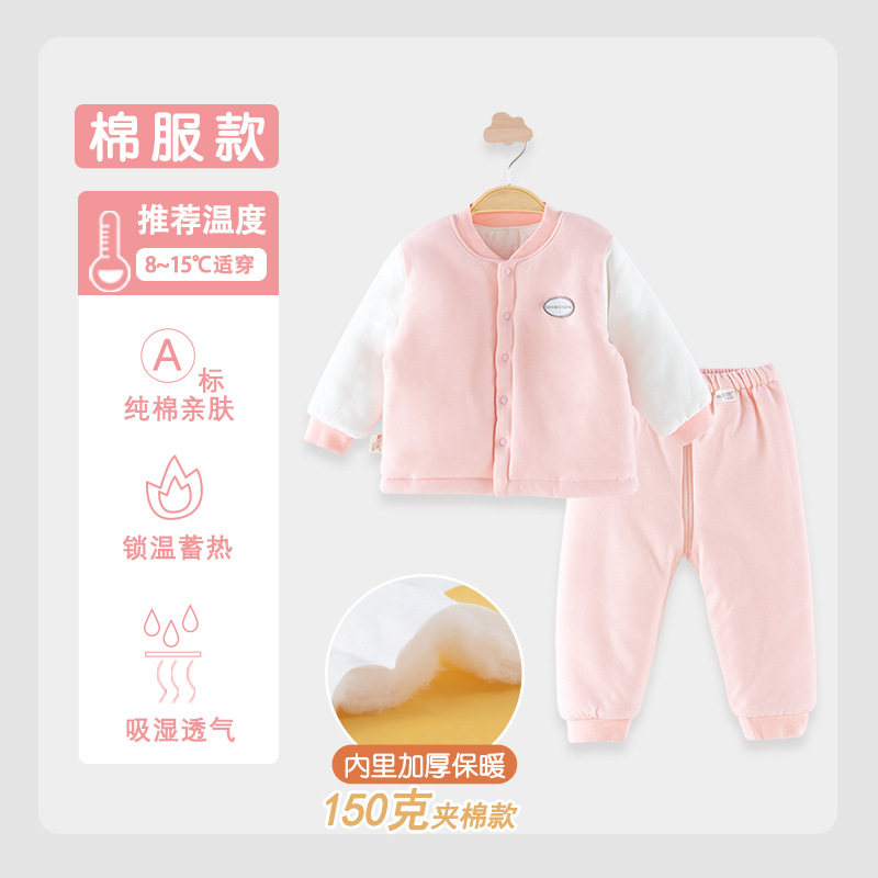 신생아의 가을과 겨울 두꺼운 세트 소년의 순면 클래스 면 패딩 재킷 면 바지 소녀의 겨울 클립 분할 옷