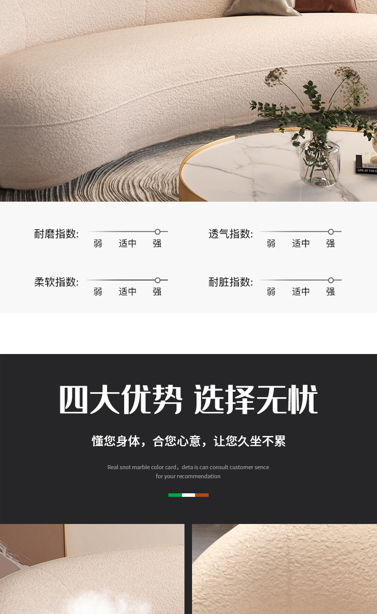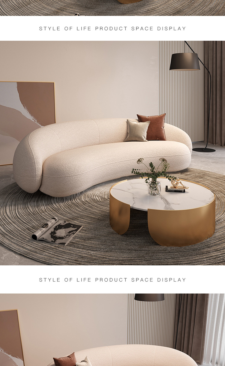 북유럽 소파 양고기 벨벳 간단한 현대 거실 작은 아파트 미용실 리셉션 호 모양의 의류 매장 소파