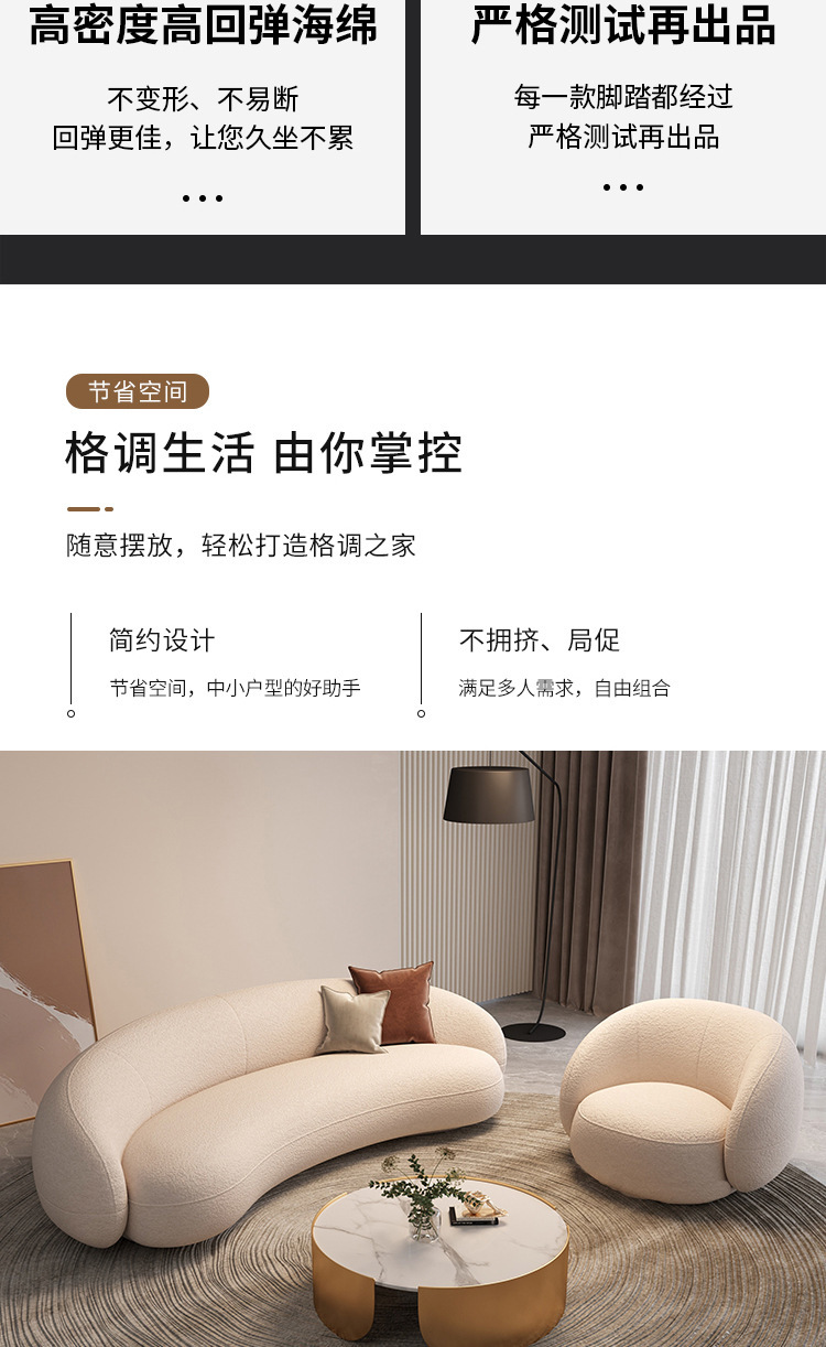 북유럽 소파 양고기 벨벳 간단한 현대 거실 작은 아파트 미용실 리셉션 호 모양의 의류 매장 소파스토어 가기