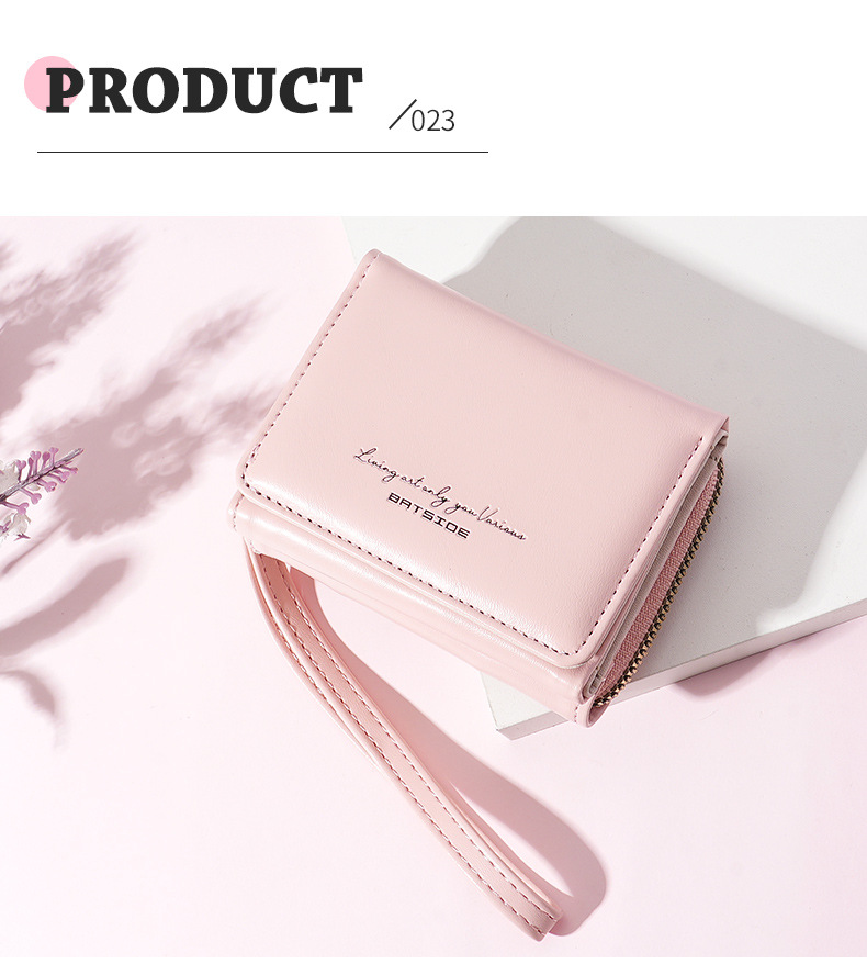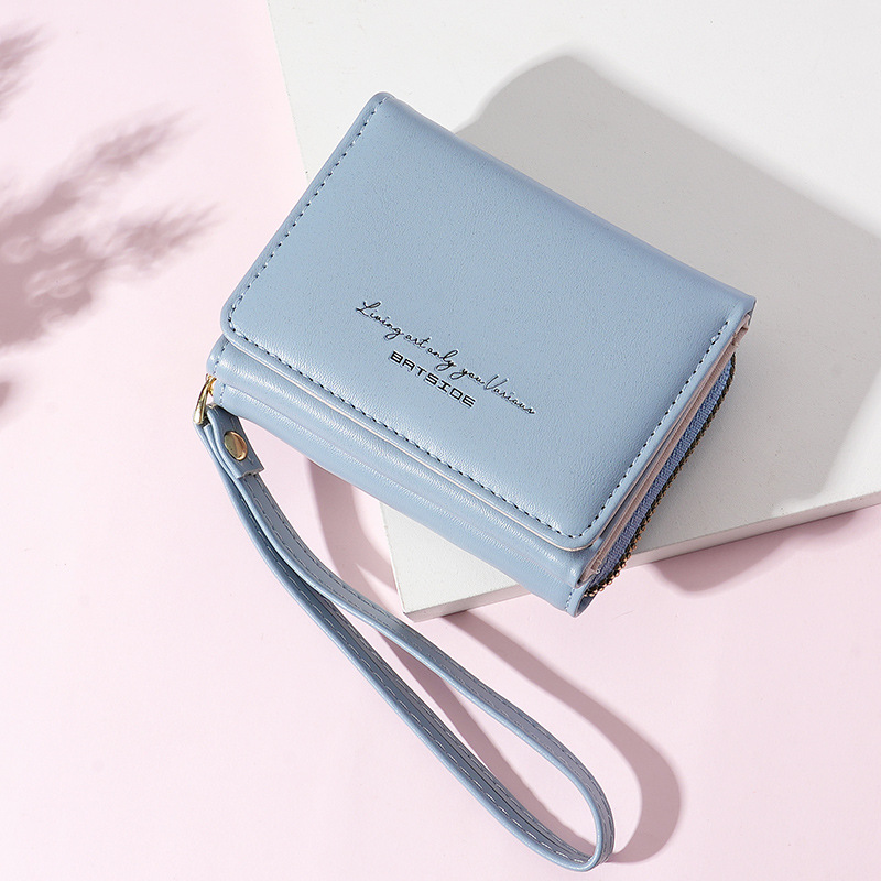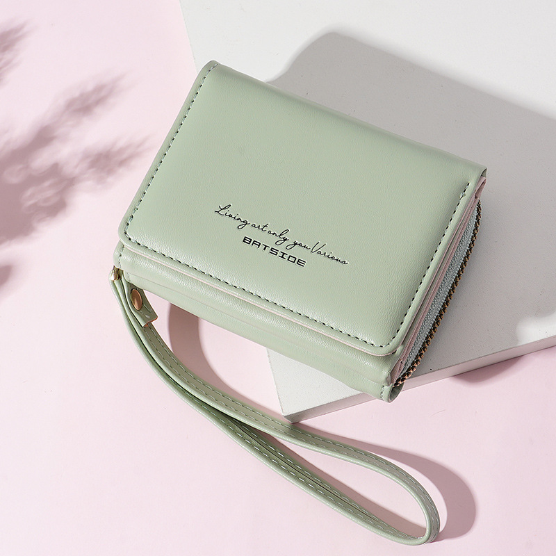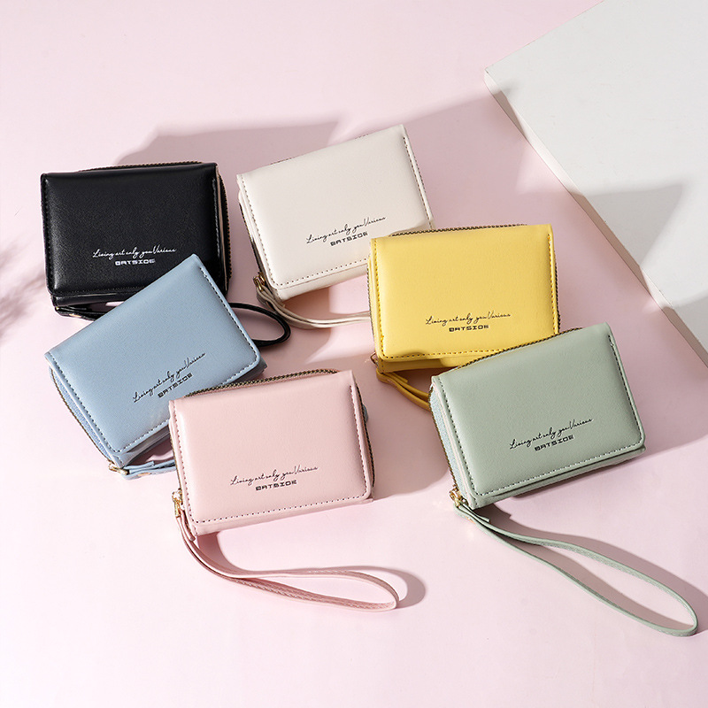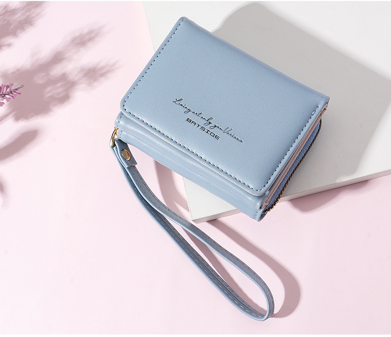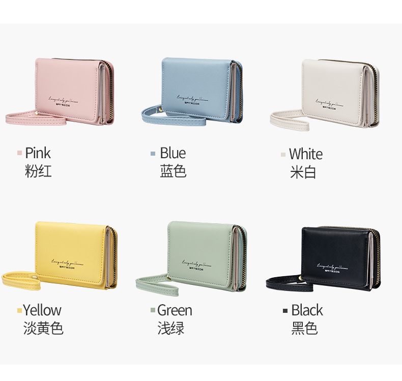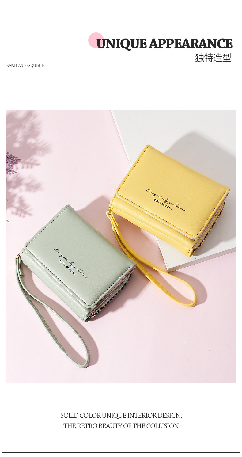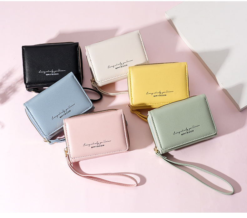 Bo Siou 크로스 보더 지갑 한국식 여성용 짧은 지퍼 동전 지갑 심플 접이식 트리플 폴딩 지갑 다기능 가방스토어 가기