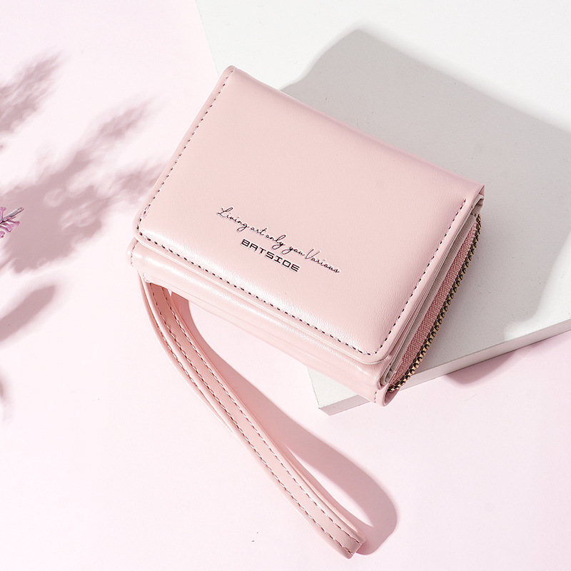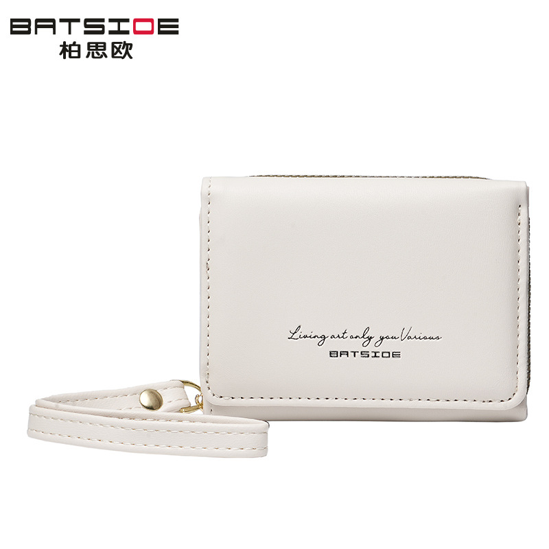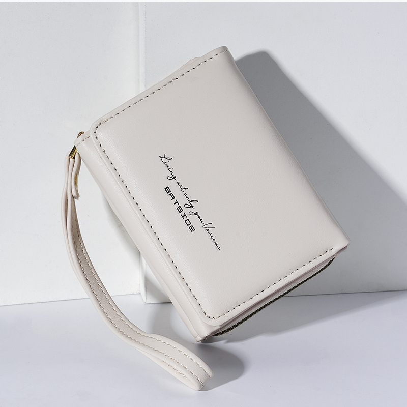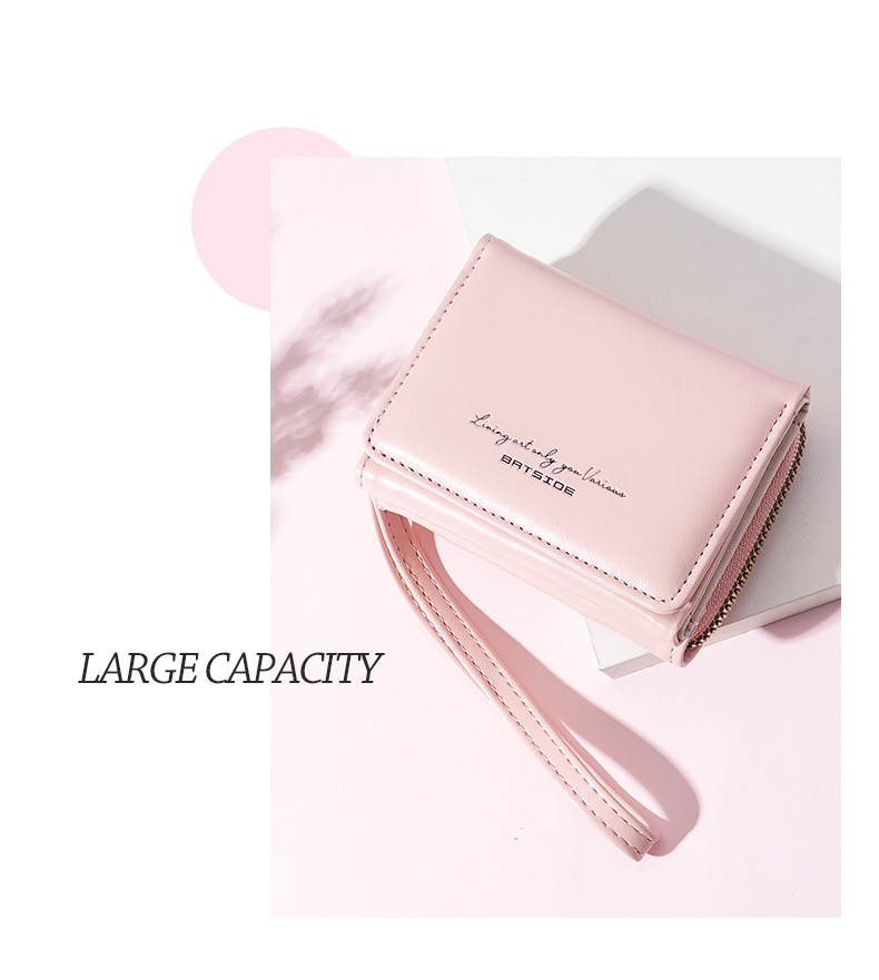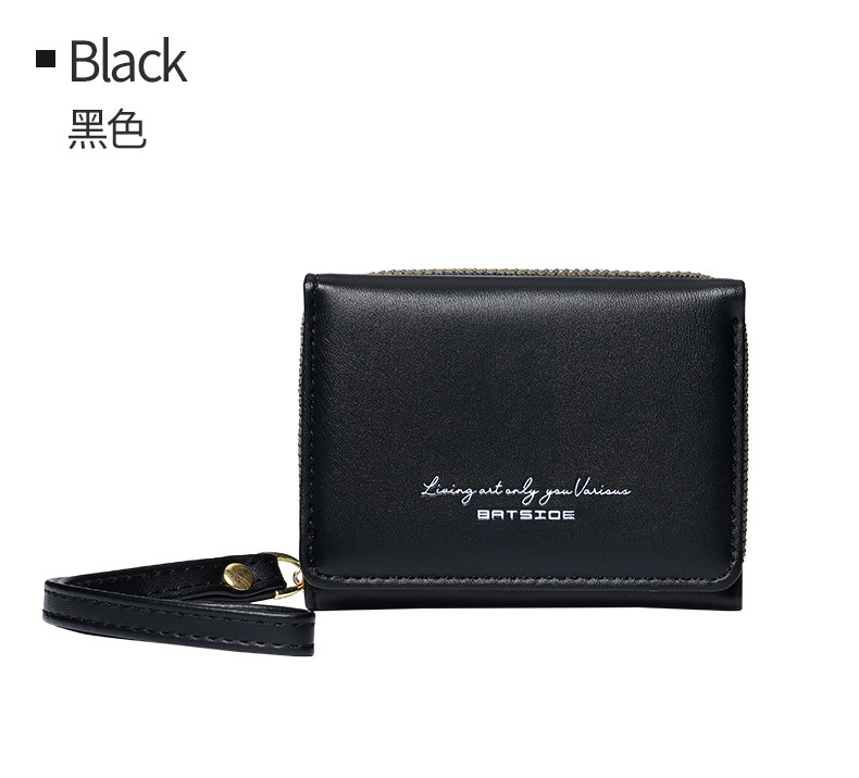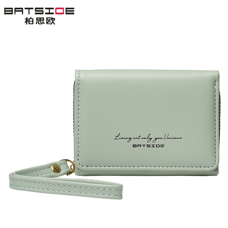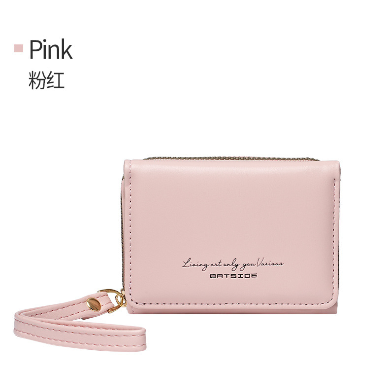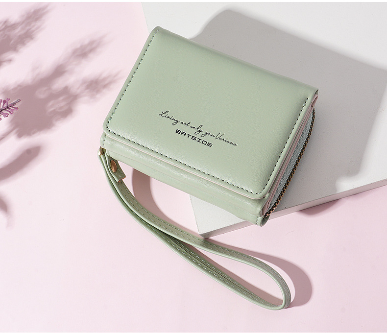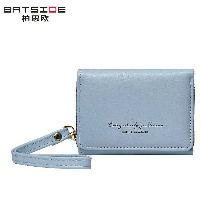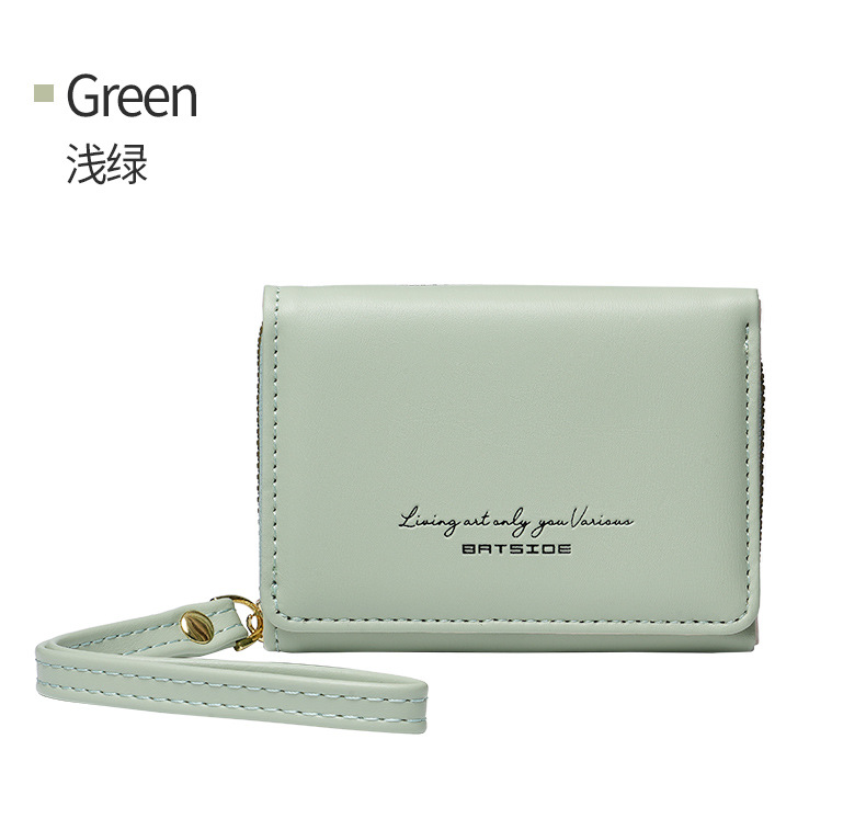 Bo Siou 크로스 보더 지갑 한국식 여성용 짧은 지퍼 동전 지갑 심플 접이식 트리플 폴딩 지갑 다기능 가방스토어 가기
