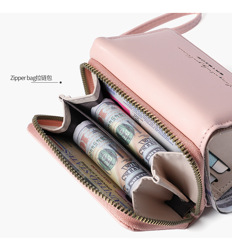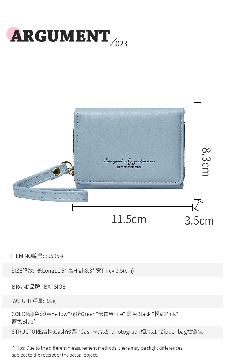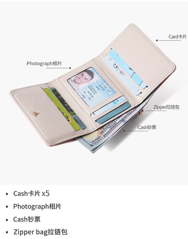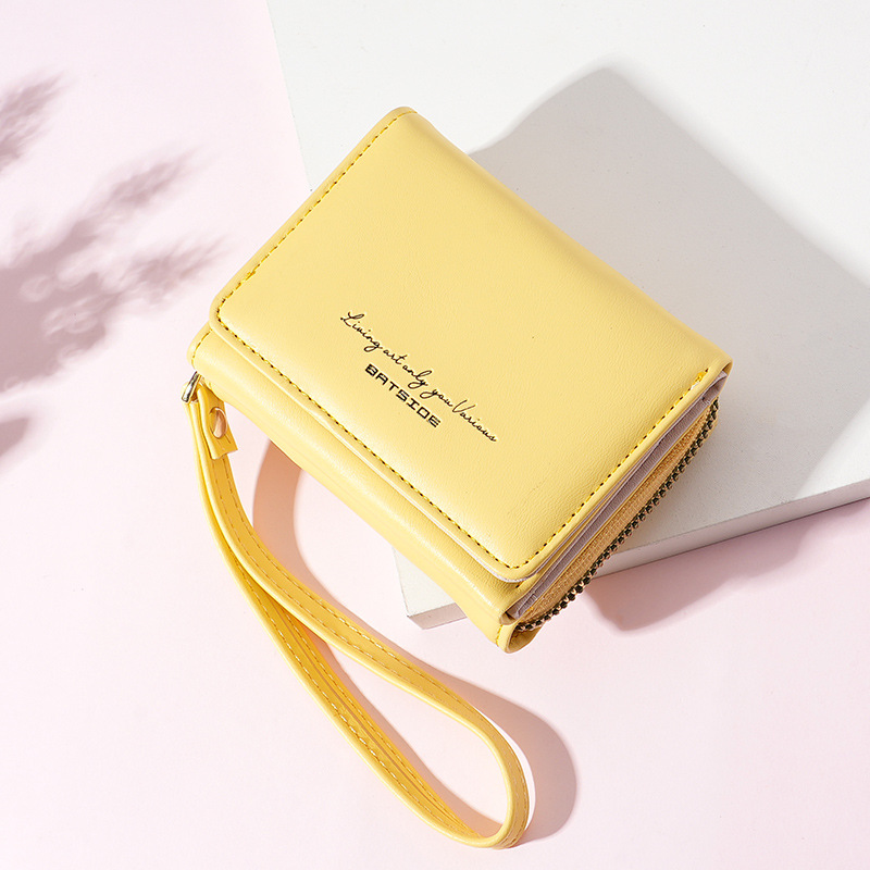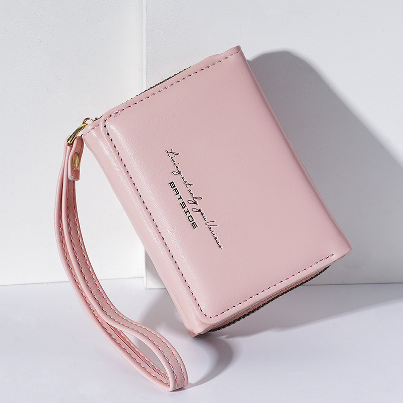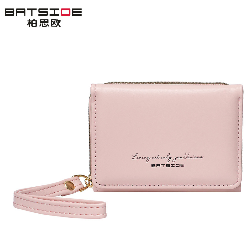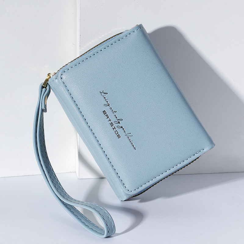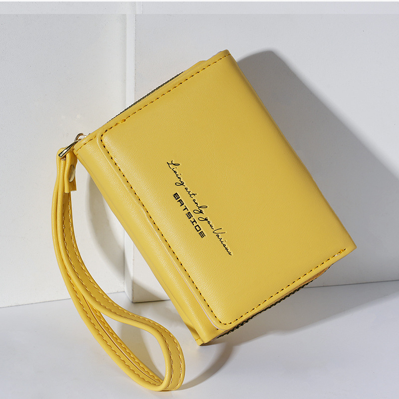 Bo Siou 크로스 보더 지갑 한국식 여성용 짧은 지퍼 동전 지갑 심플 접이식 트리플 폴딩 지갑 다기능 가방스토어 가기