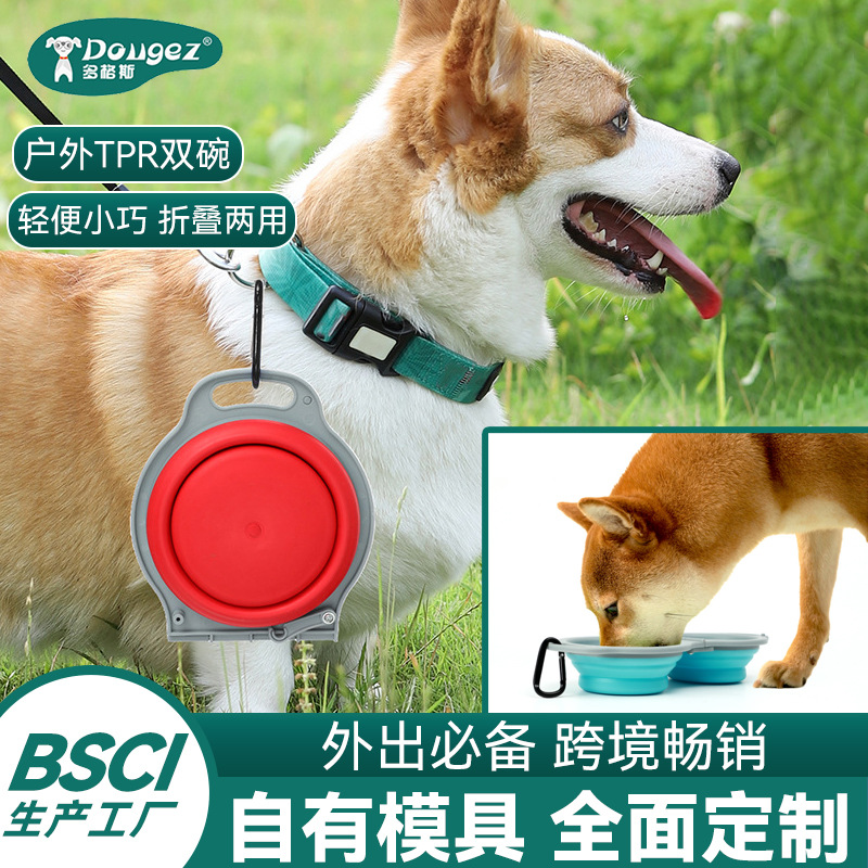 공장 주문 밖으로 애완 동물 그릇 접이식 휴대용 등산 버클 개 분지 고양이 피더 애완 동물 더블 볼 안티 노크