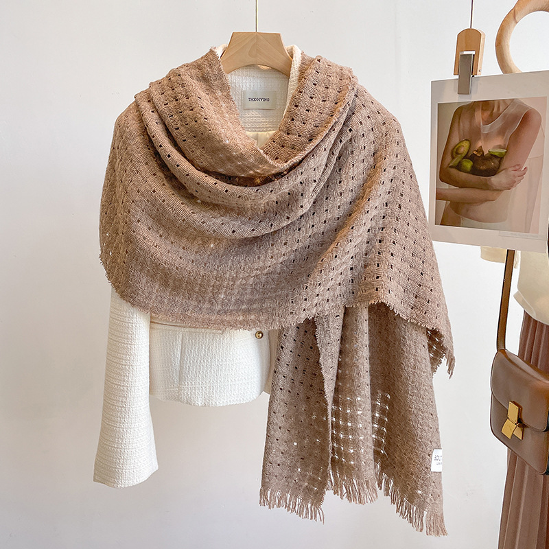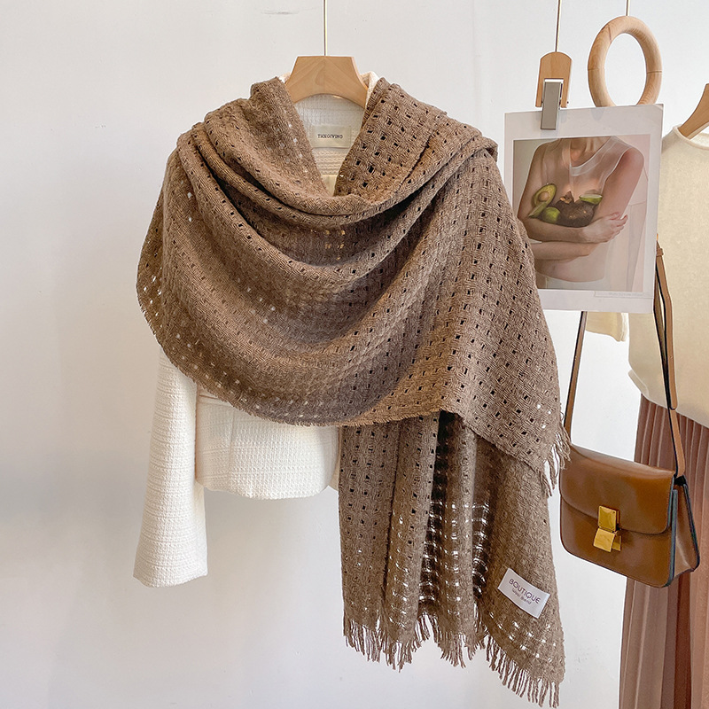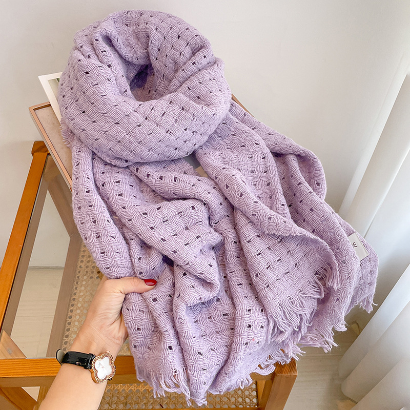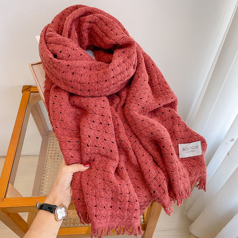 한국 스타일의 세련된 중공 울 스카프 여성의 겨울 새로운 고급 울 목도리 두꺼운 따뜻한 학생 스카프
