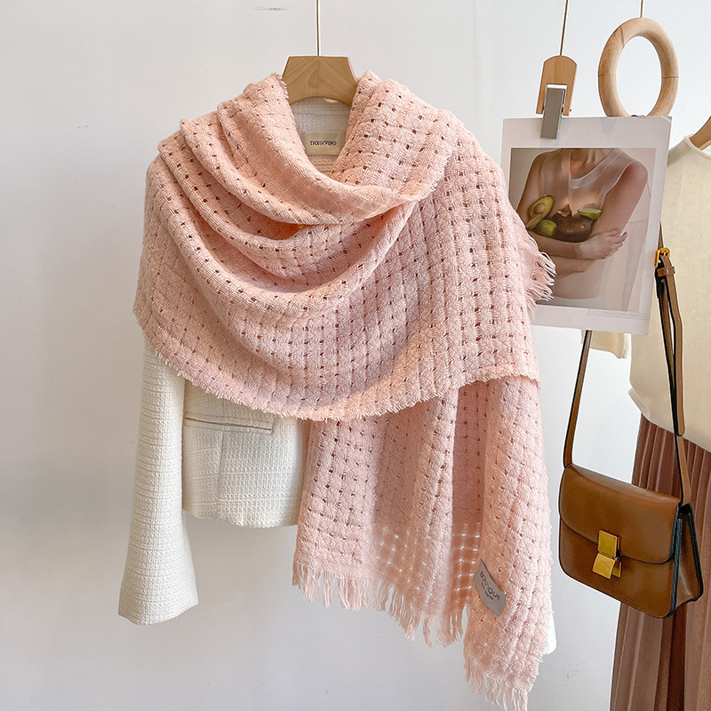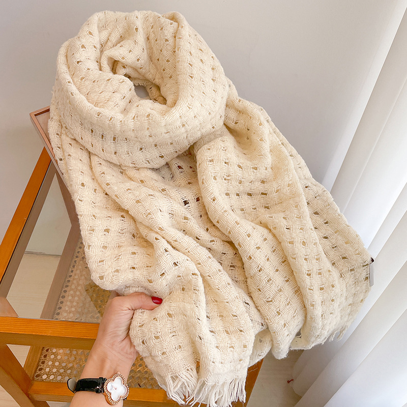 한국 스타일의 세련된 중공 울 스카프 여성의 겨울 새로운 고급 울 목도리 두꺼운 따뜻한 학생 스카프스토어 가기