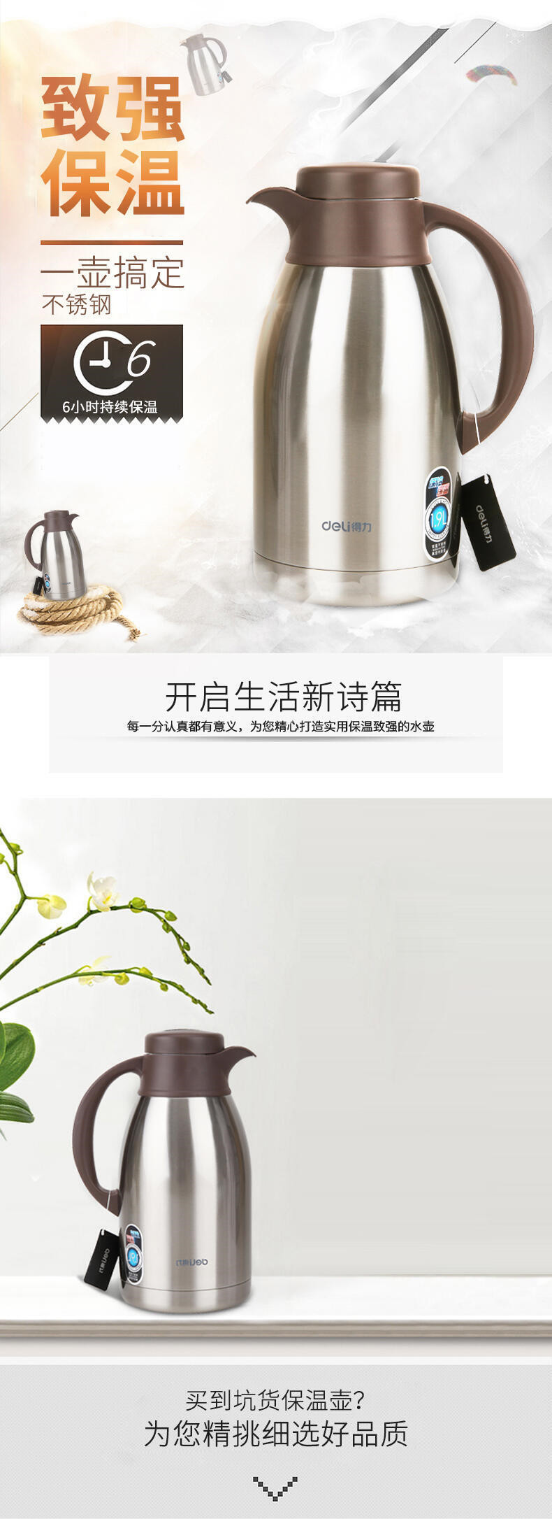 델리 8967 절연 냄비 304 스테인레스 스틸 진공 라이너 단열 차가운 냄비 여행 사무실 가정 단열 냄비