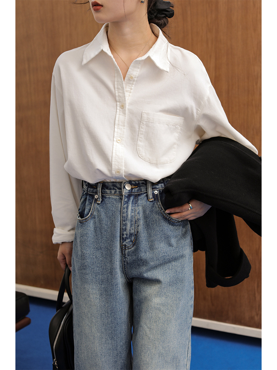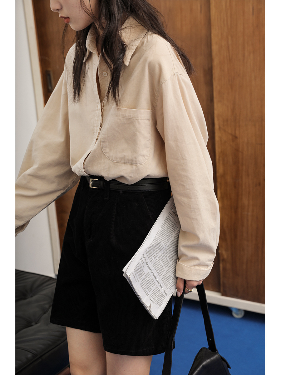 레트로 코듀로이 레이어드 긴팔 셔츠 여성용 2025 가을 겨울 신상 디자인 감각 있는 다용도 셔츠스토어 가기