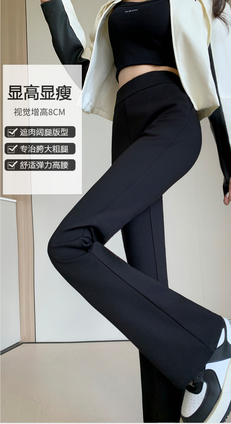 블랙 고탄성 슈퍼모델 마이크로 플레어 팬츠 25 가을 겨울 여성용 하이웨이스트 슬리밍 캐주얼 팬츠, 고급스러운 플레어 팬츠 여성용스토어 가기