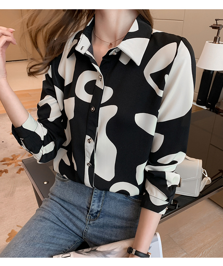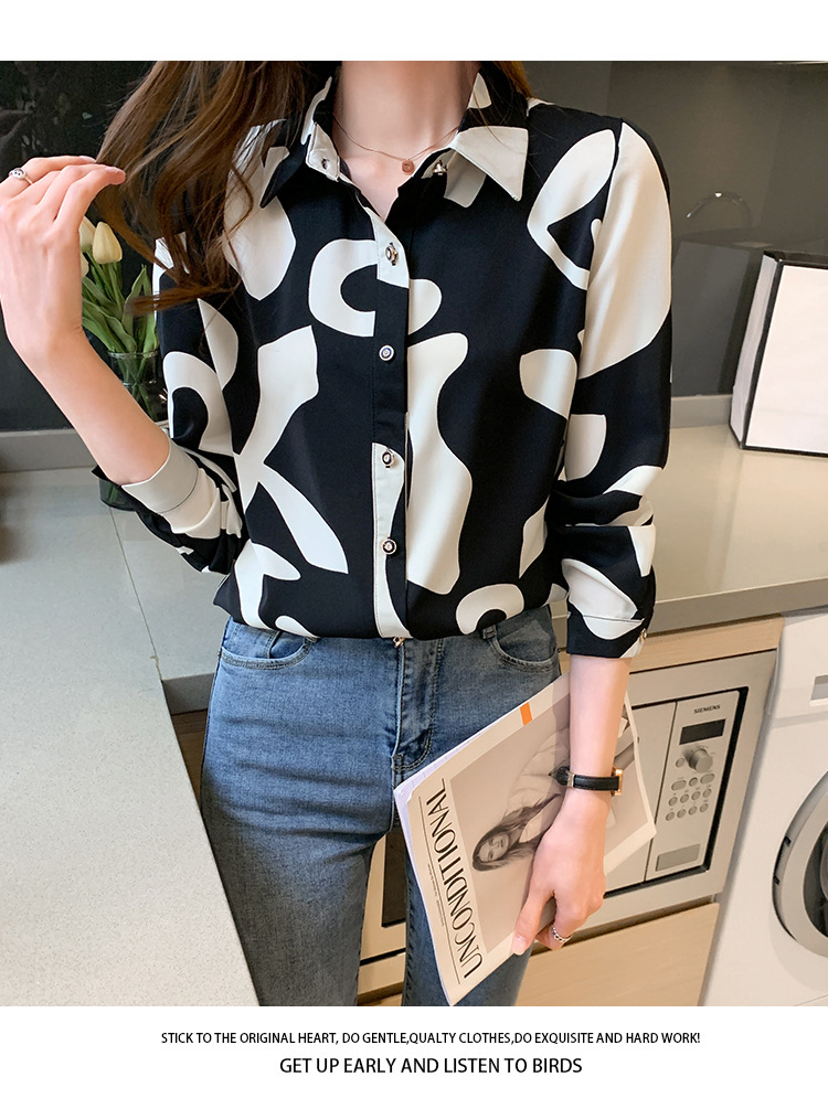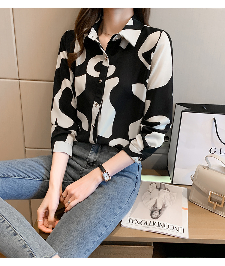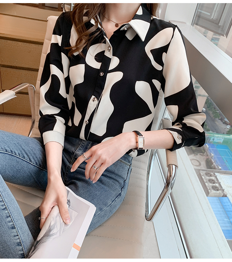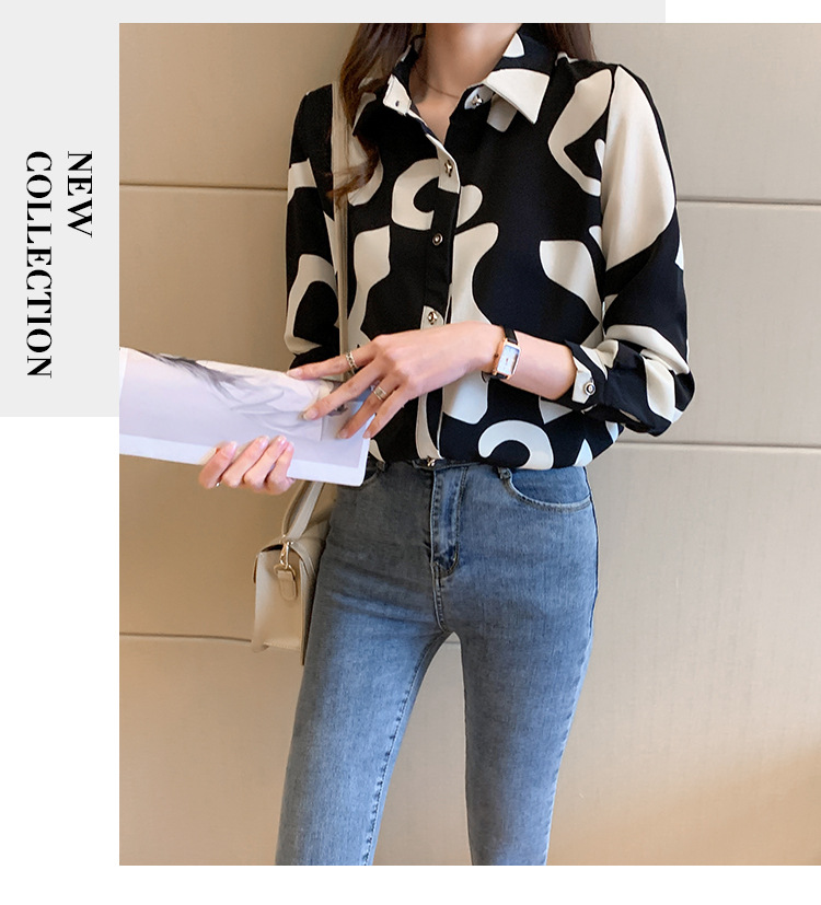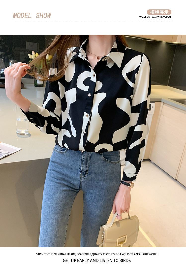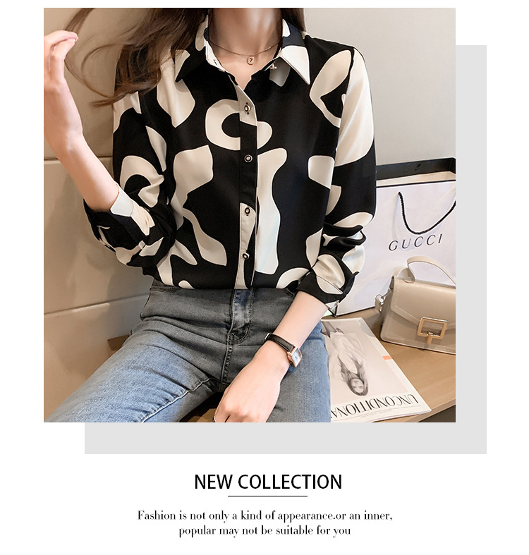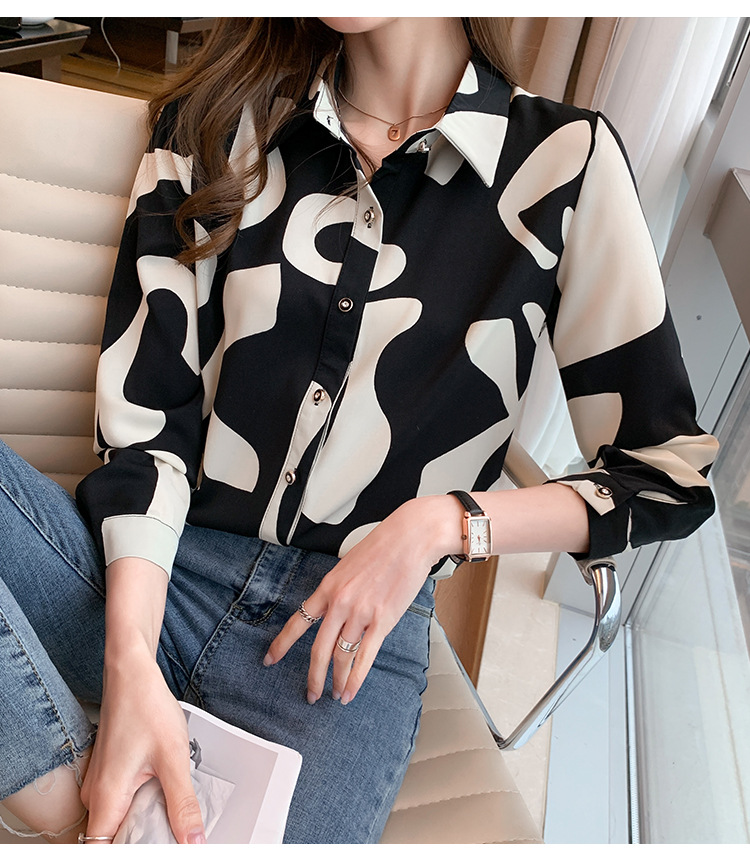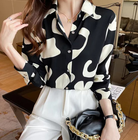 국경 간 아마존 유럽과 미국의 새로운 패션 프린트 셔츠 여성용 느슨한 우아한 긴 소매 셔츠 간단한 카디건스토어 가기