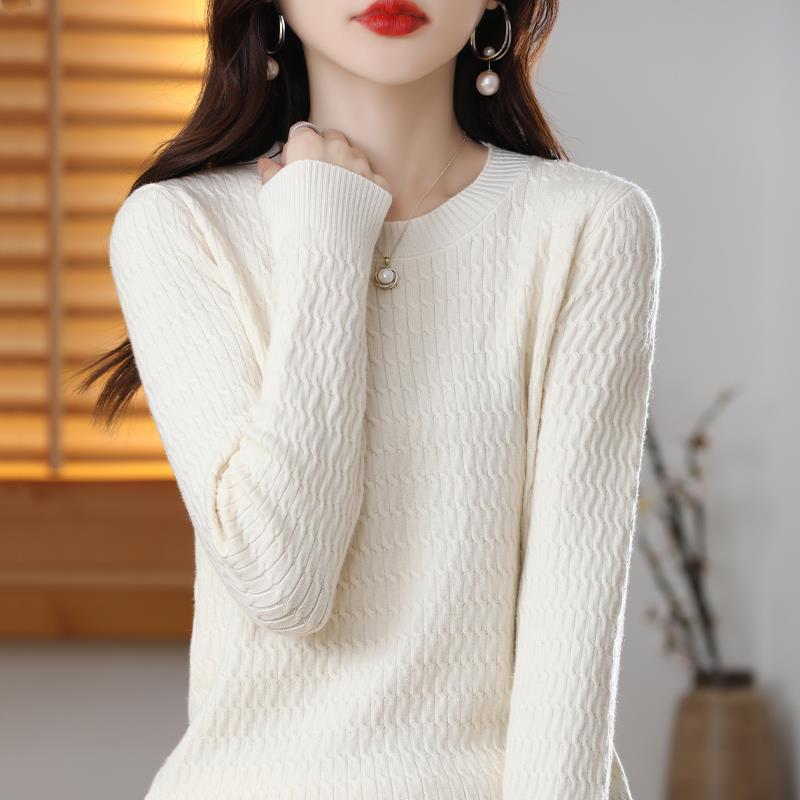 가을과 겨울 새로운 트위스트 플라워 스웨터 여성의 라운드 넥 느슨한 긴 소매 내부 스웨터 숙녀 기본 셔츠의 한국어 버전 도매