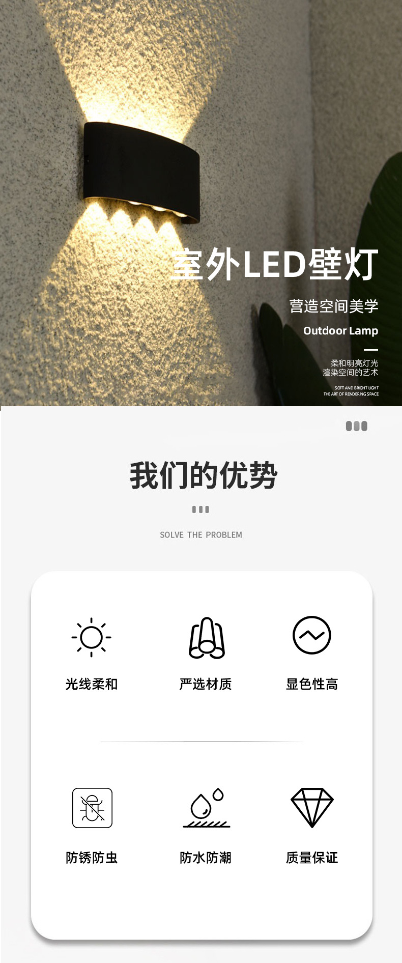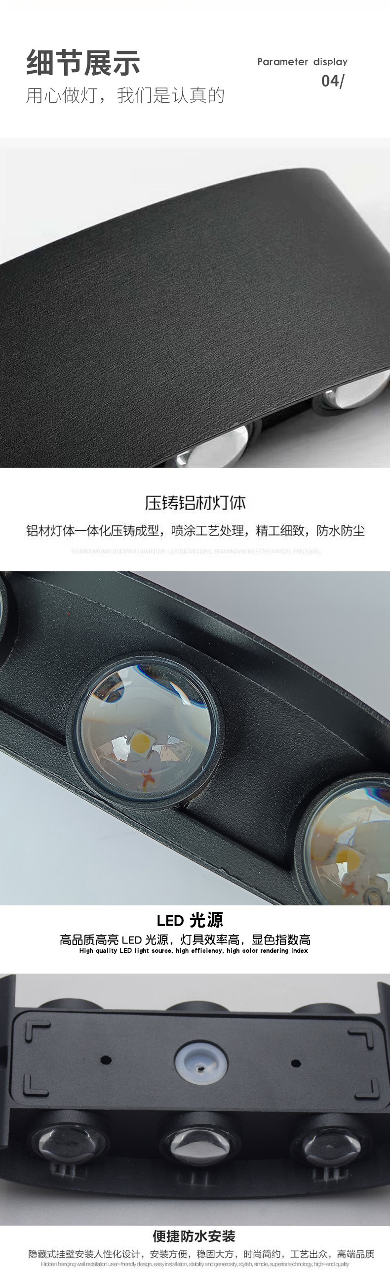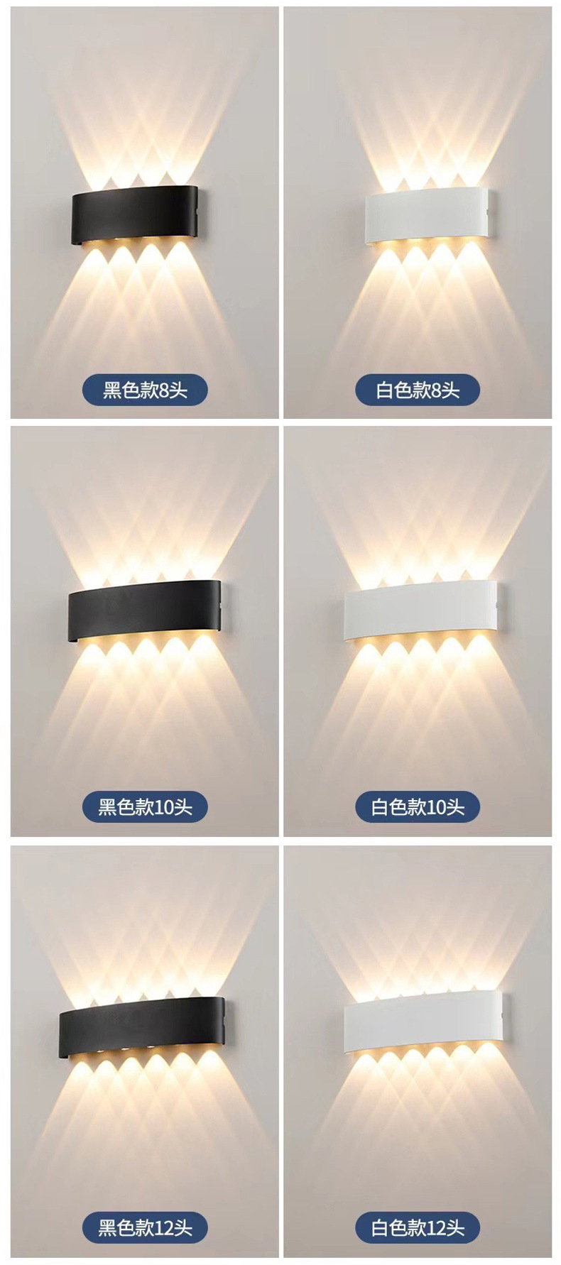 Led 야외 방수 벽 램프 위아래로 빛나는 안뜰 양방향 벽 램프 빌라 호텔 복도 발코니 실내 및 실외 촬영