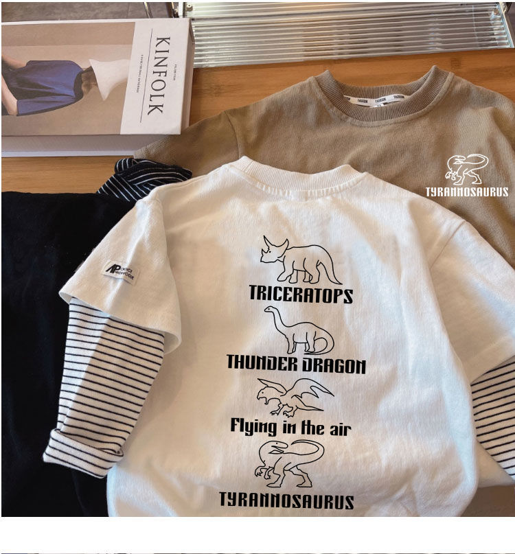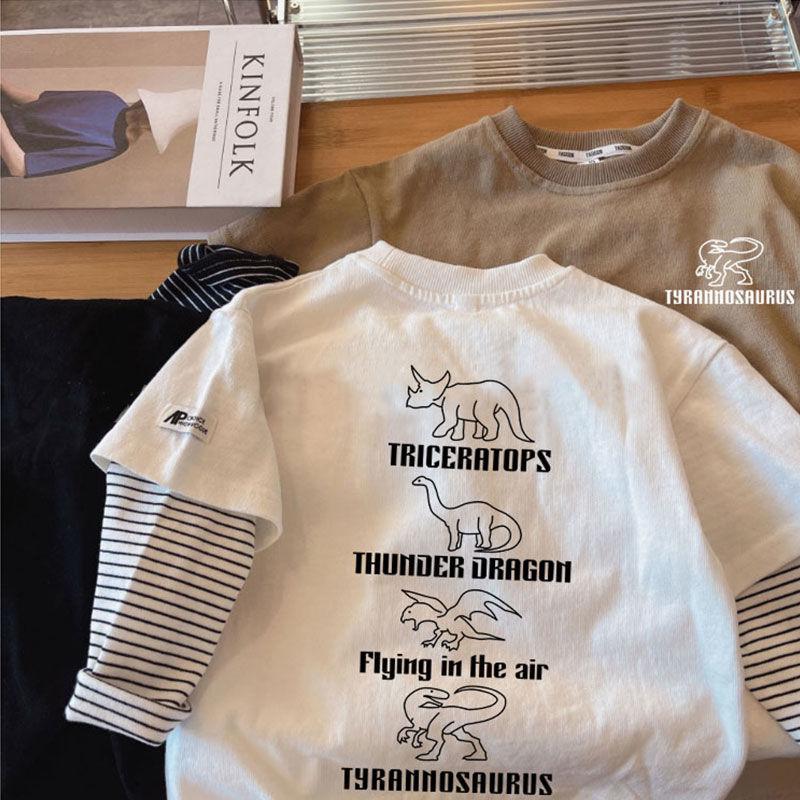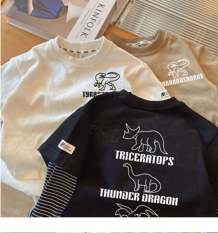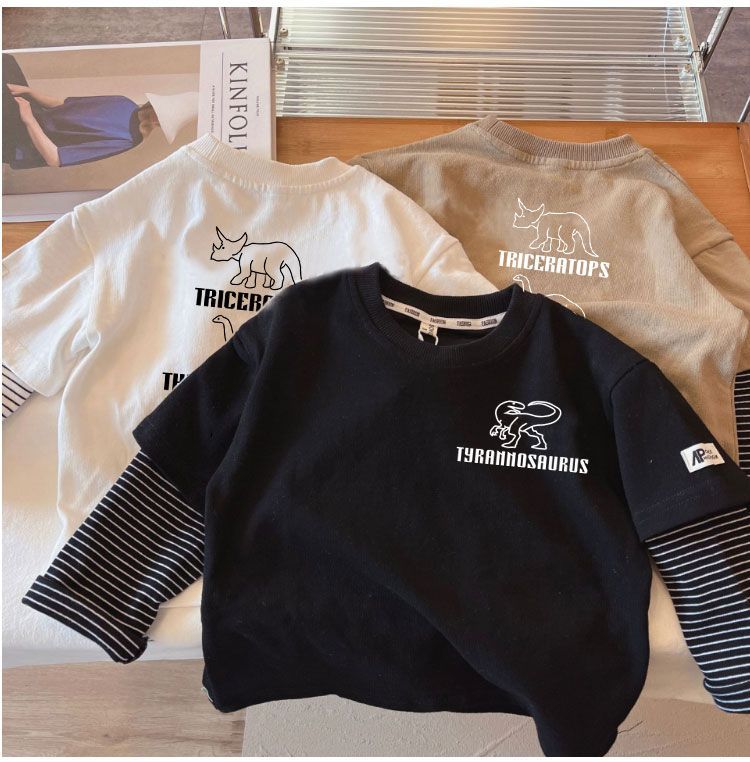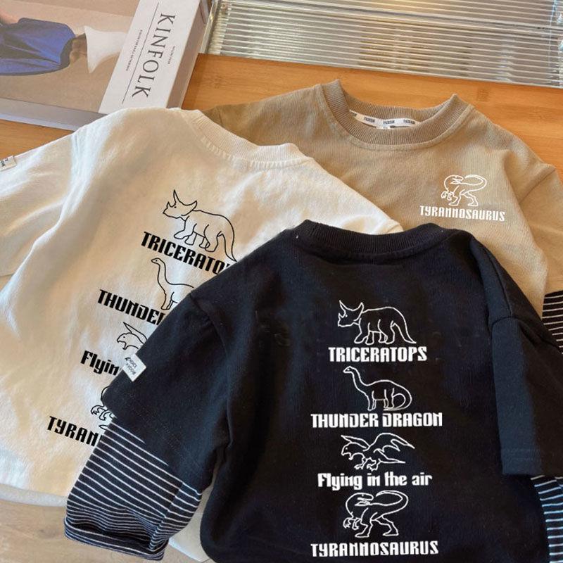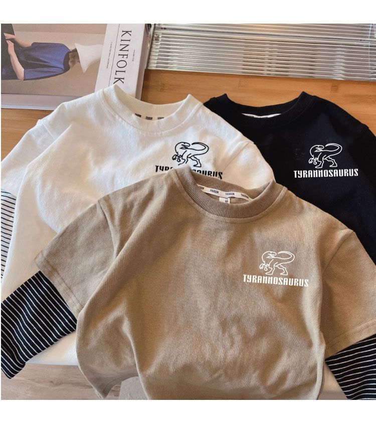 면 소년 긴팔 티셔츠 2023 새로운 한국 스타일 어린이 가짜 투피스 탑 소년 봄과 가을 잘 생긴 탑스토어 가기