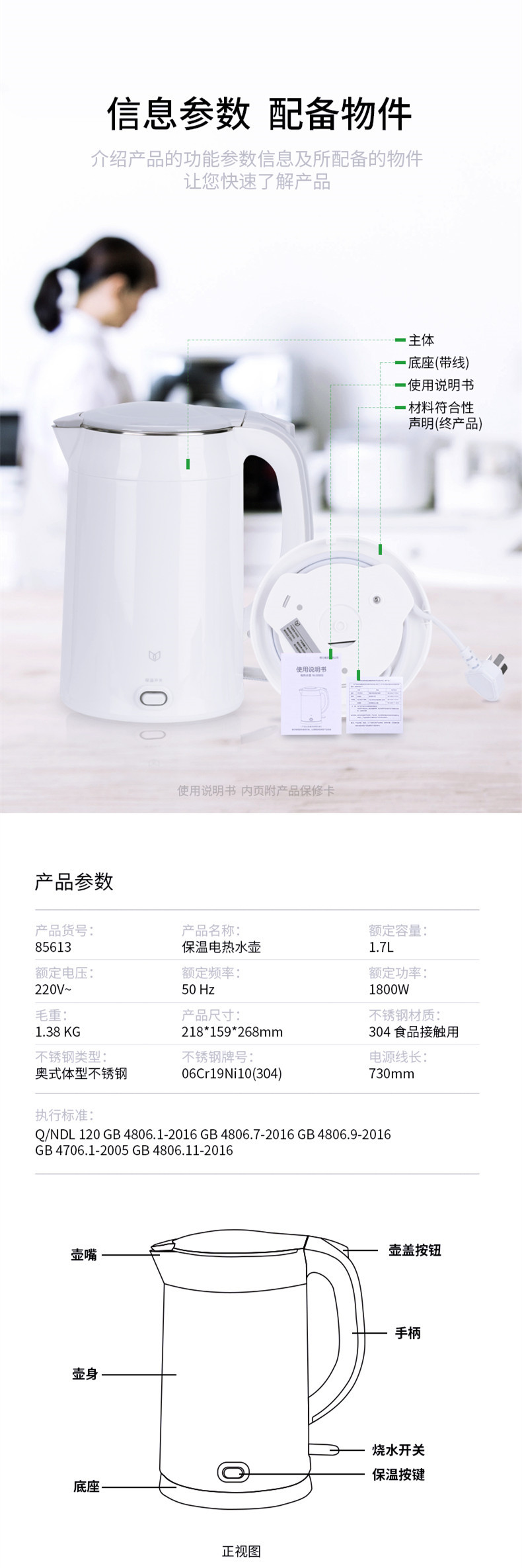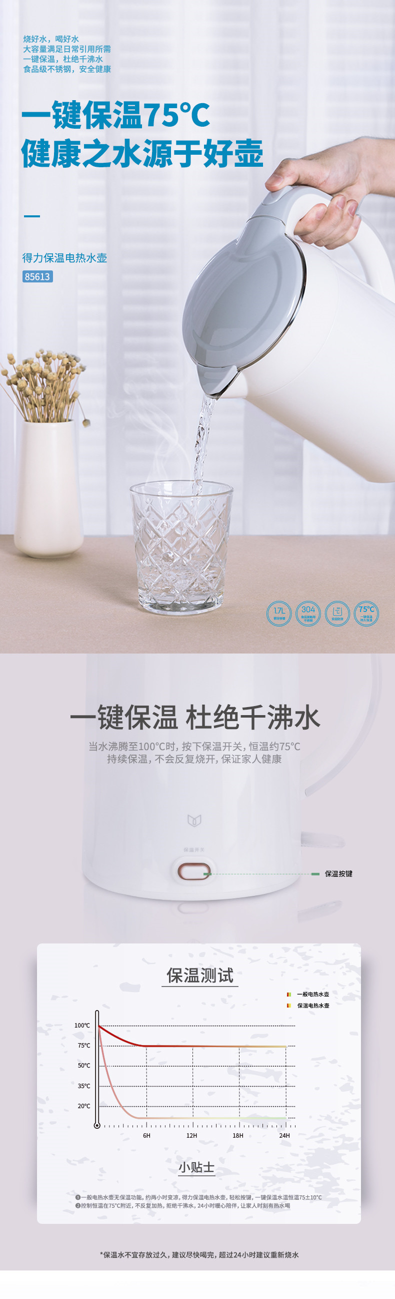 • 1 세트 [키 단열/1.7L 전기 주전자]]