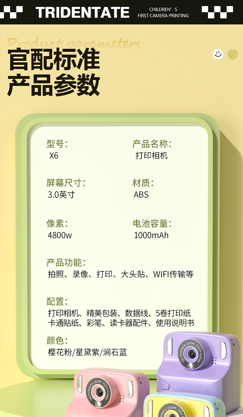 相机、说明书、充电线、挂绳、打印纸 读卡器 贴纸 彩笔