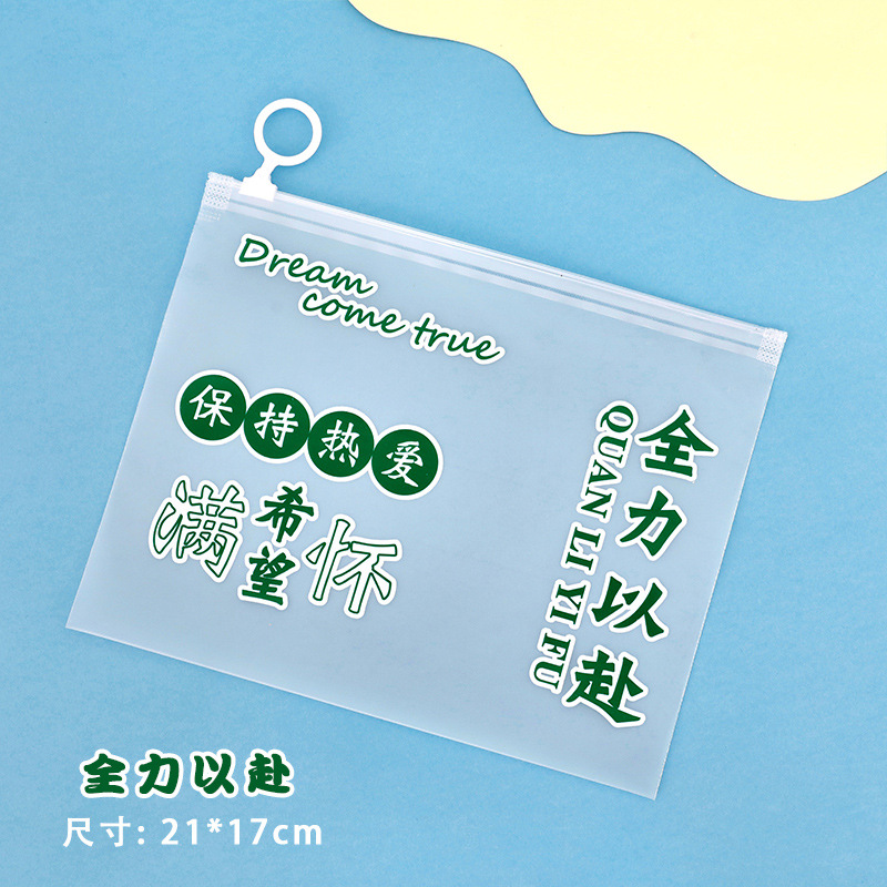 미래는 브로케이드 링 파일 가방과 같습니다 학생 영감 텍스트 테스트 종이 정보 가방 투명 방수 문구 보관 가방스토어 가기