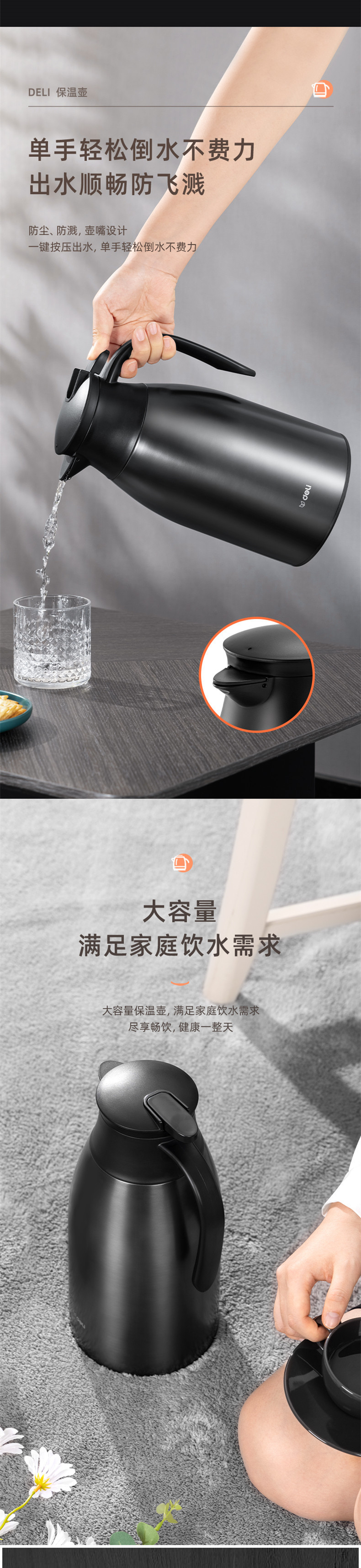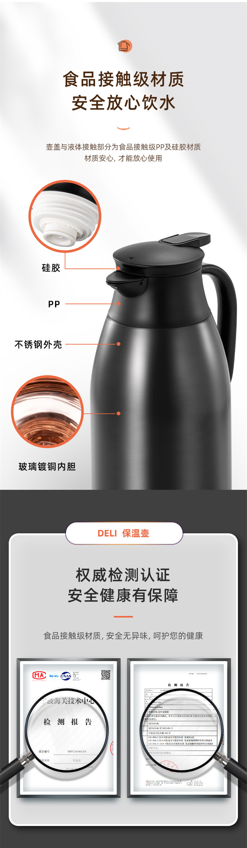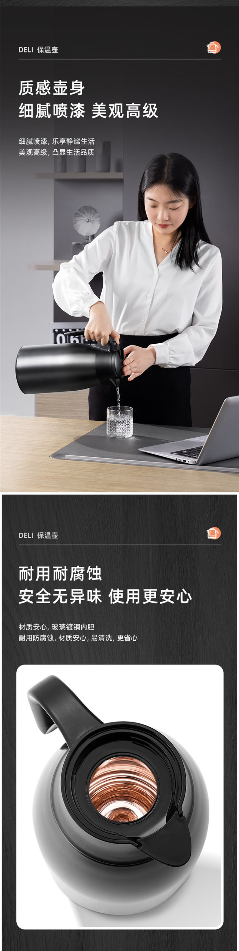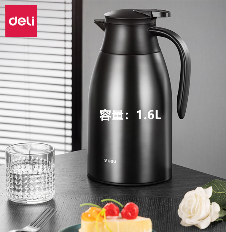 델리 LL104 절연 포트 유리 구리 도금 라이너 절연 콜드 포트 여행 사무실 가정 단열 포트 1.6L스토어 가기