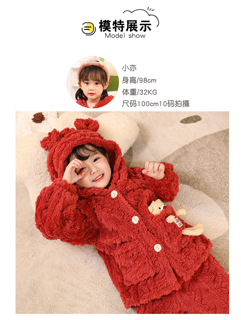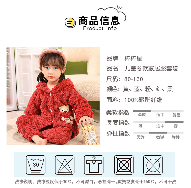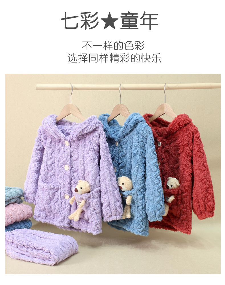어린이 잠옷 가을과 겨울 두꺼운 플란넬 세트 소년과 소녀를위한 긴 따뜻한 귀여운 산호 양털 가정 옷스토어 가기