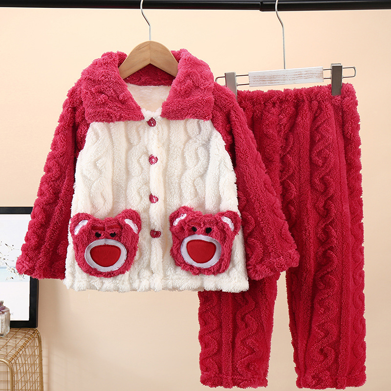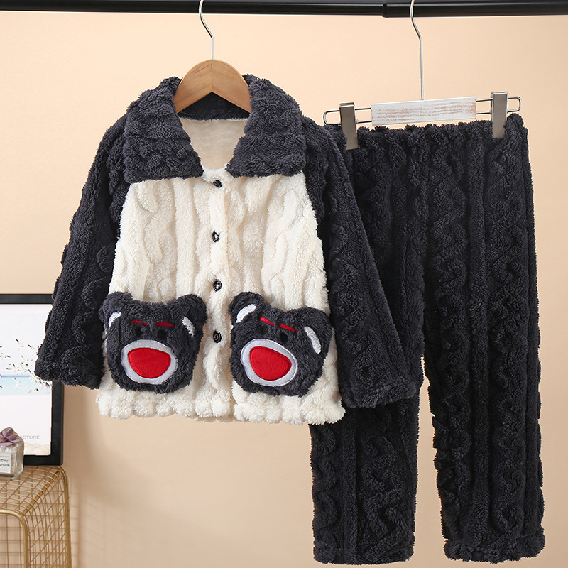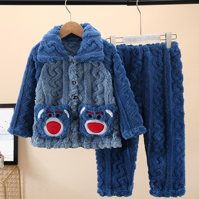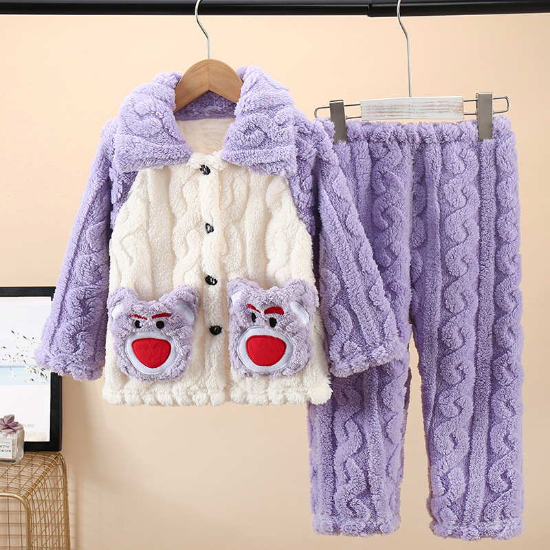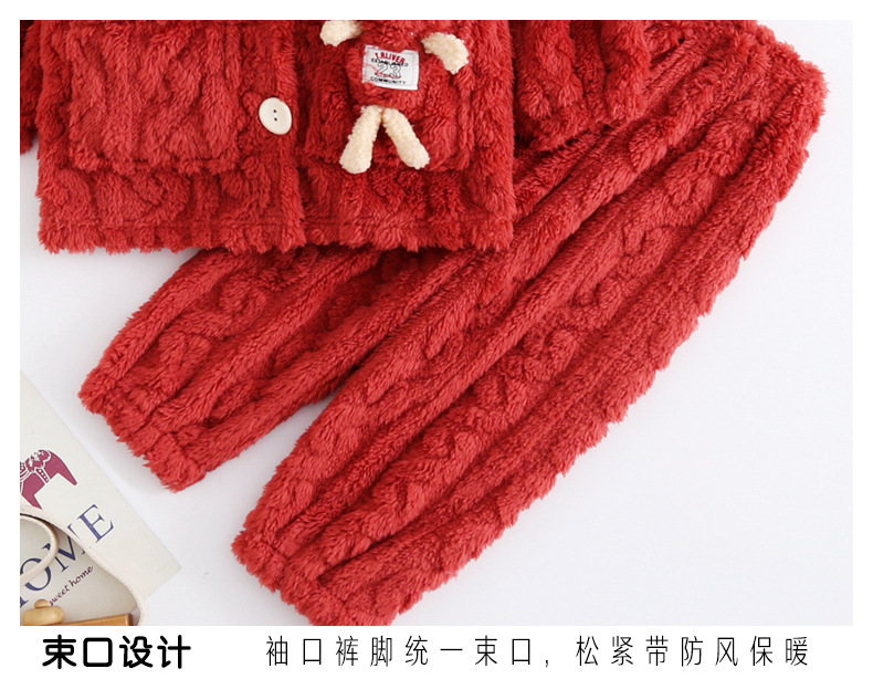 어린이 잠옷 가을과 겨울 두꺼운 플란넬 세트 소년과 소녀를위한 긴 따뜻한 귀여운 산호 양털 가정 옷
