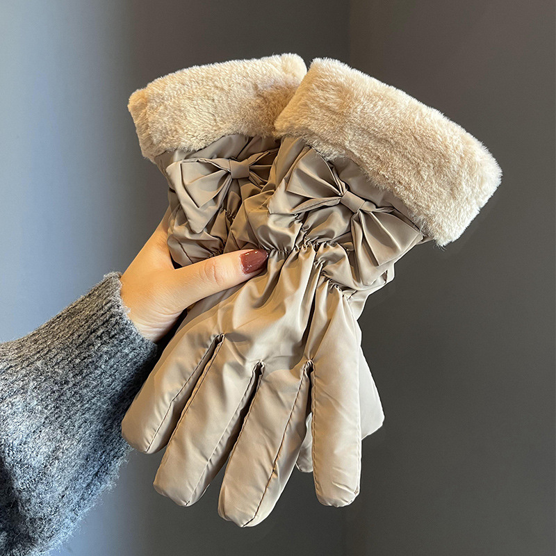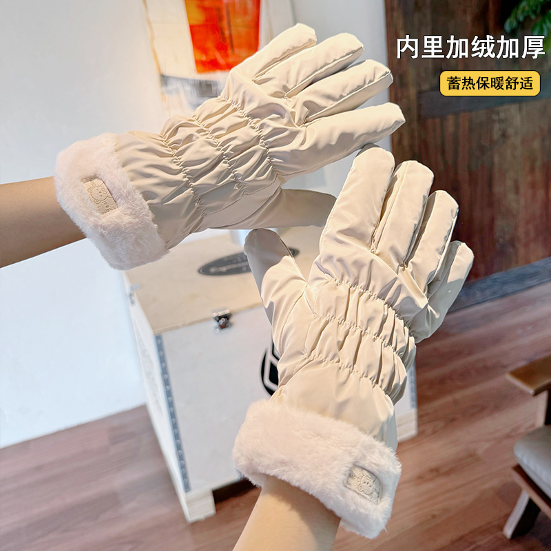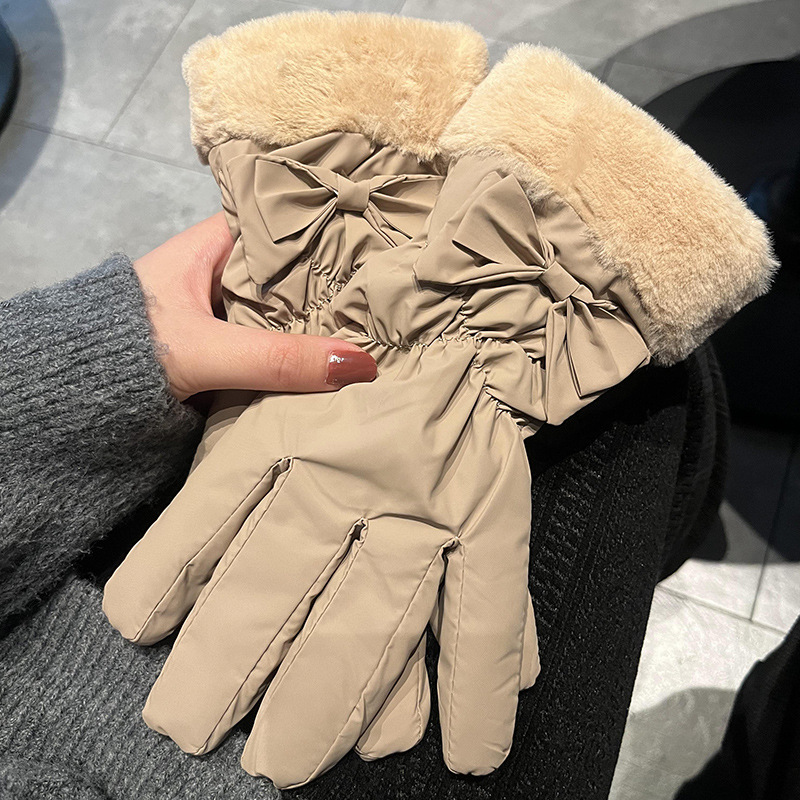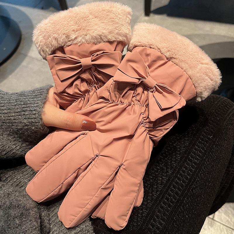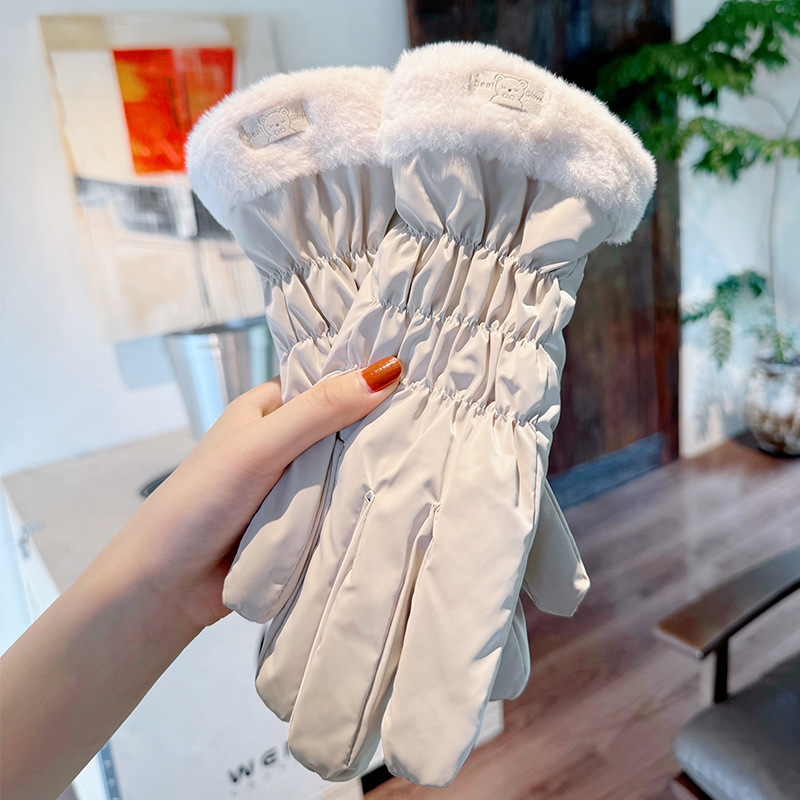 한국 스타일 겨울 따뜻한 터치 스크린 학생 여자의 두꺼운 면 다운 사이클링 방한 귀여운 스키 장갑 방풍 기모