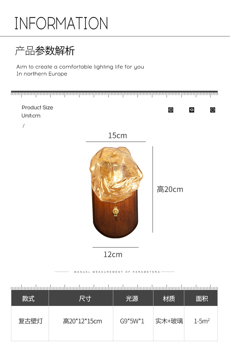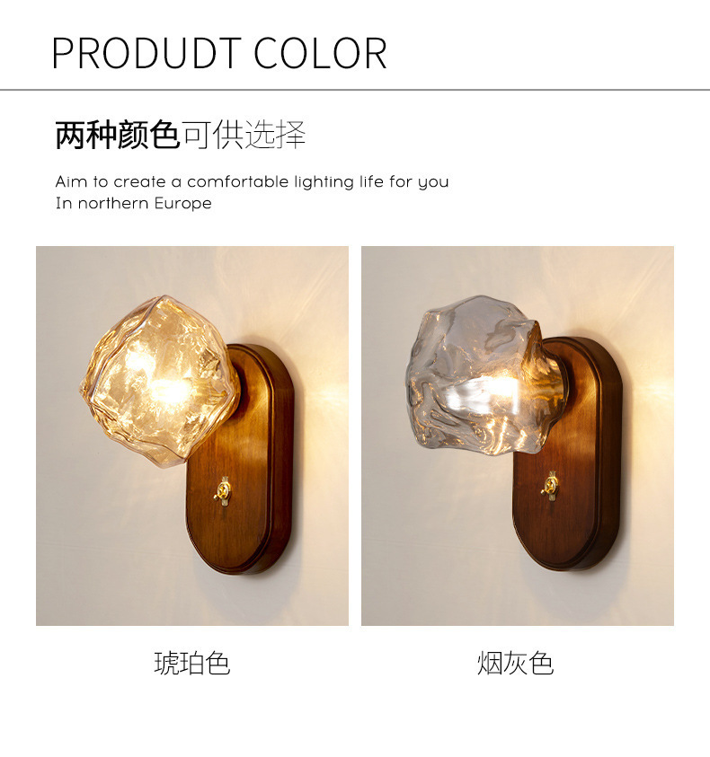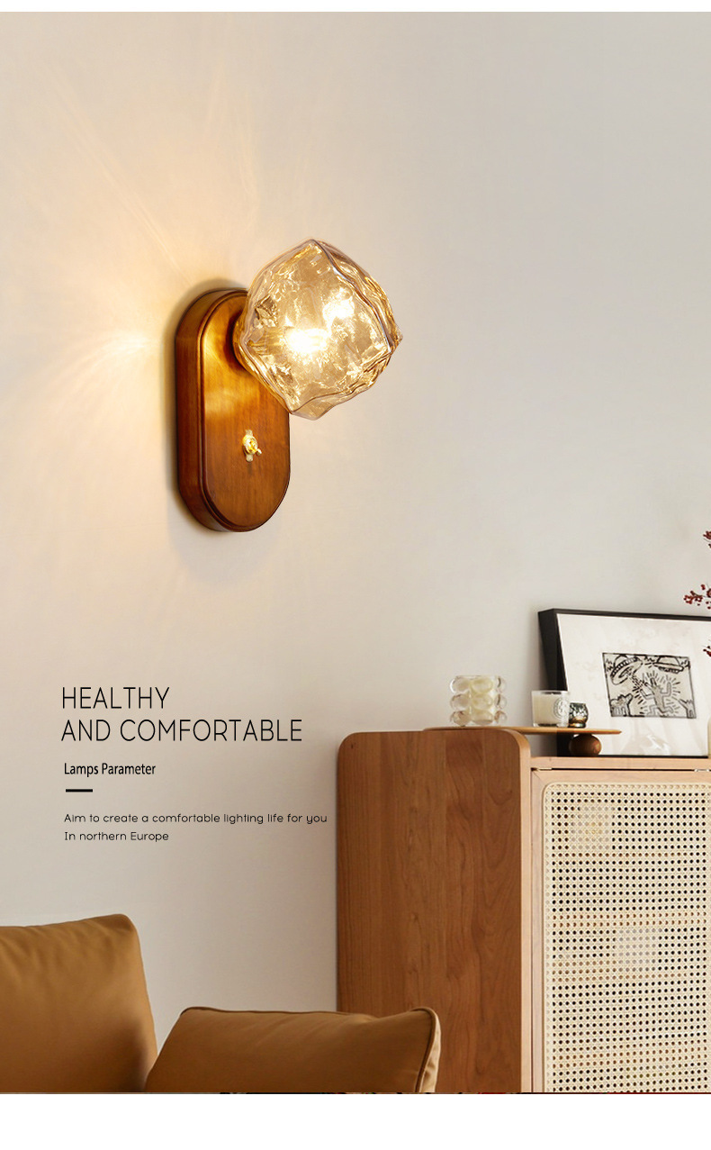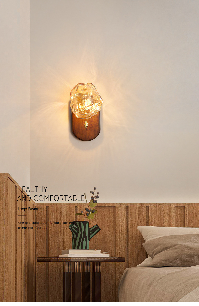 디자이너 아이스 블록 벽 램프 일본식 복고풍 간단한 거실 배경 벽 조명 미니멀리스트 마스터 침실 침대 옆 분위기 램프