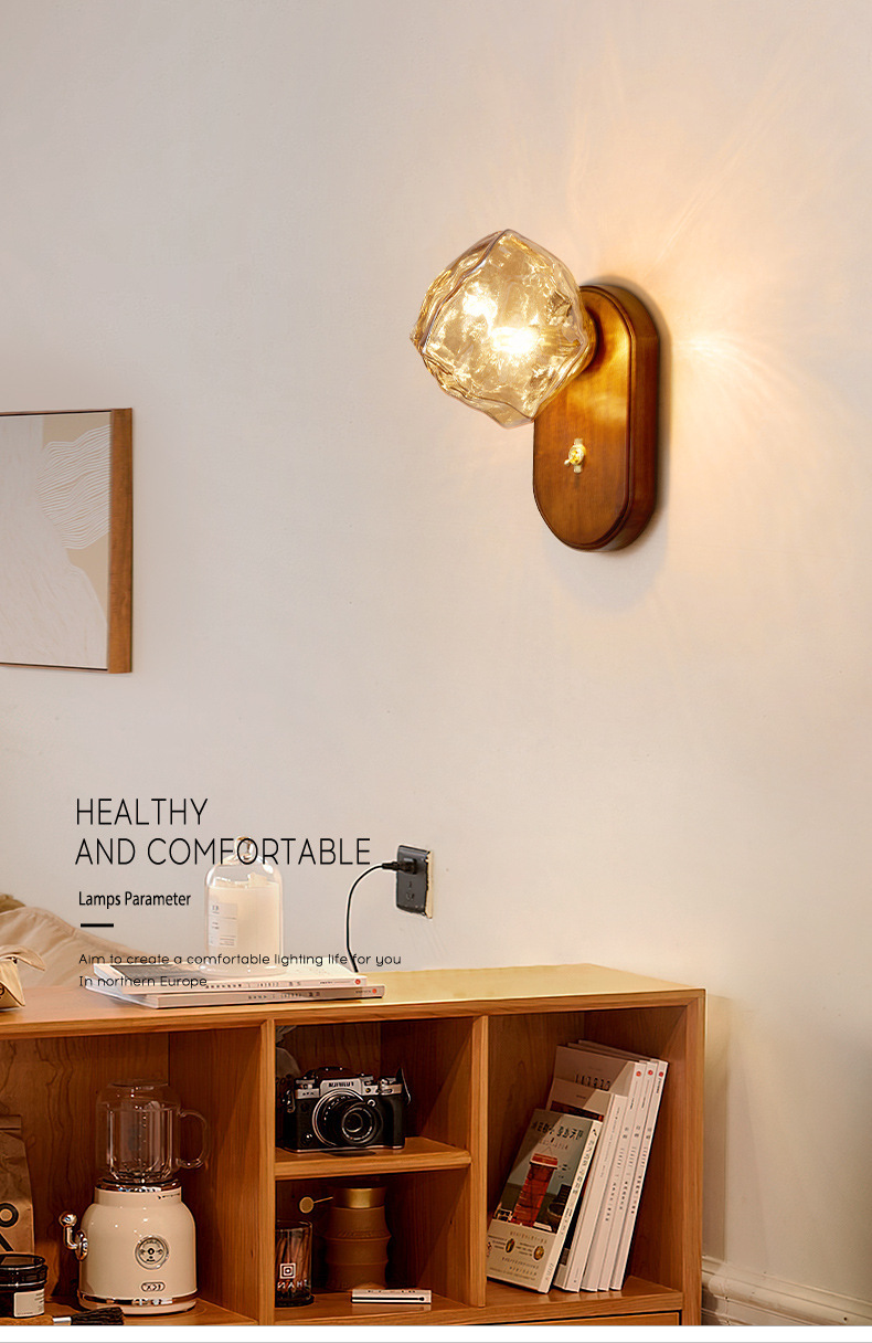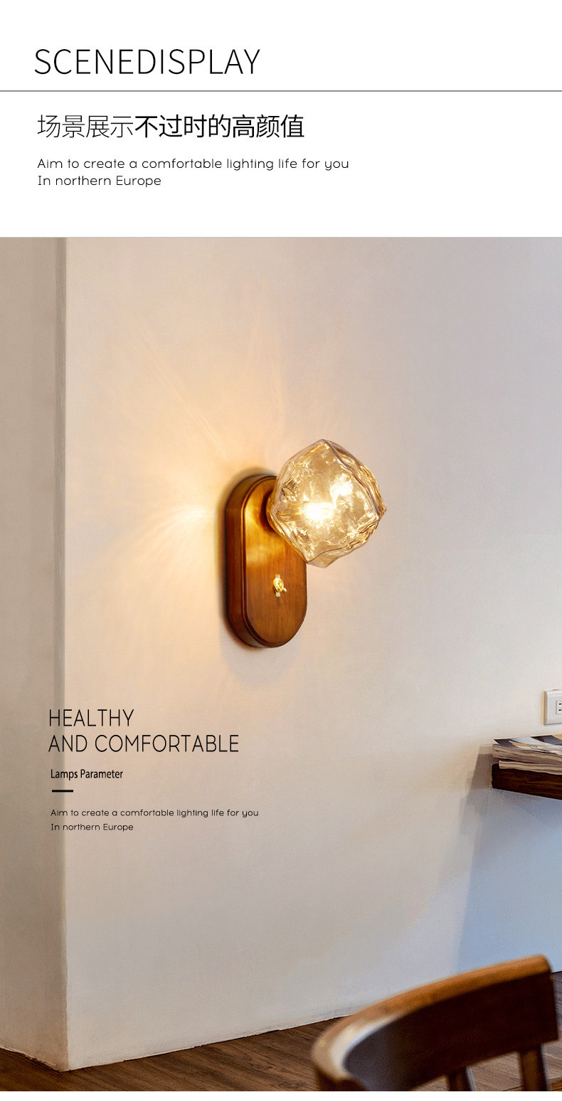 디자이너 아이스 블록 벽 램프 일본식 복고풍 간단한 거실 배경 벽 조명 미니멀리스트 마스터 침실 침대 옆 분위기 램프스토어 가기