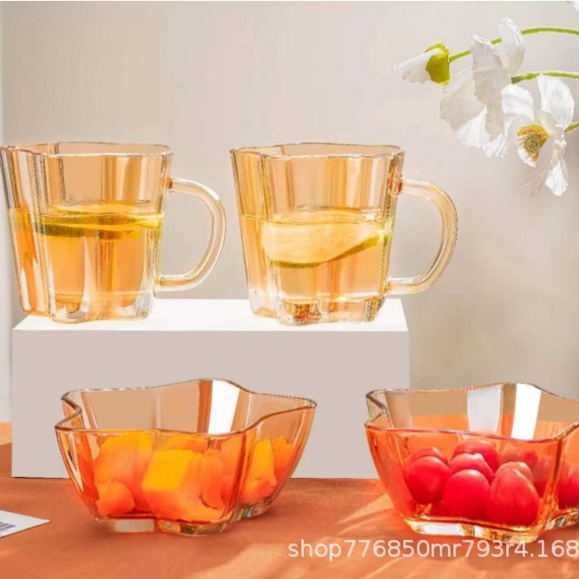 Jia Jia 선물 스타 유리 그릇 4 피스 세트 가정용 커피 밀크 컵 핸들 세트 활동 선물