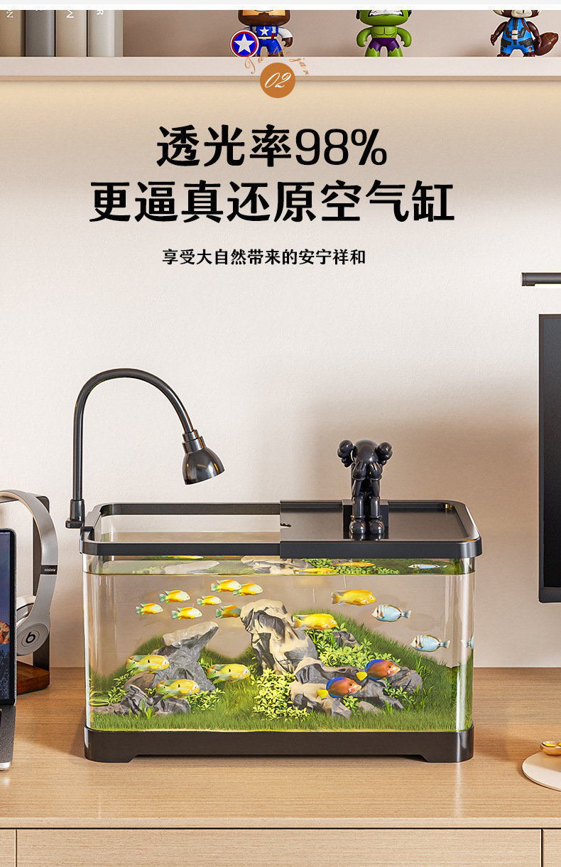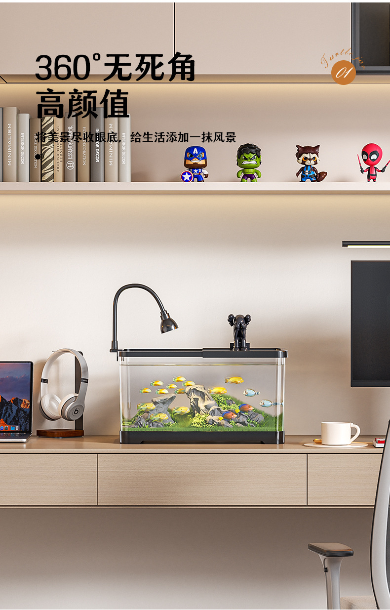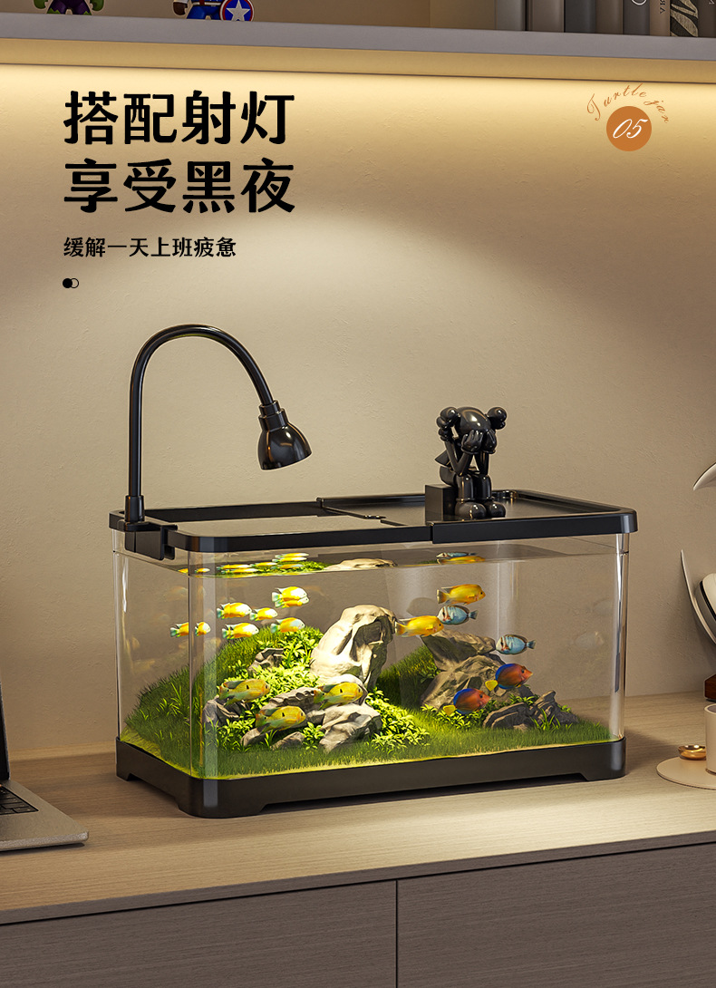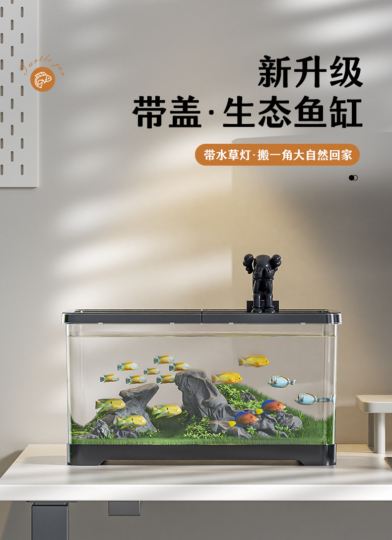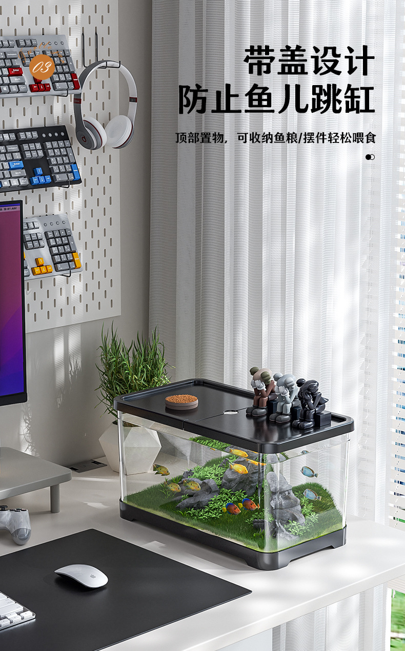 새로운 데스크탑 풍경 생태 어항 거실 발코니 거북이 육각 공룡 새우 특수 탱크 뚜껑 가정 소형
