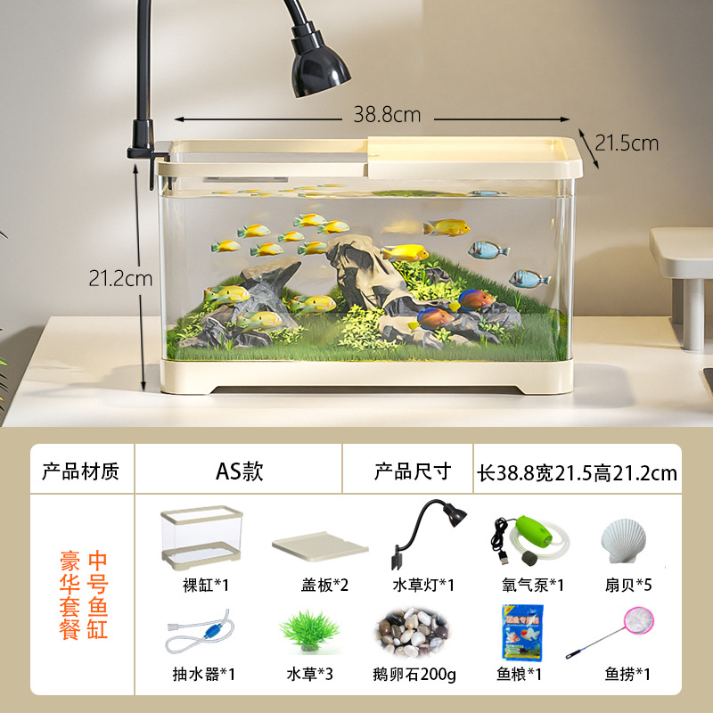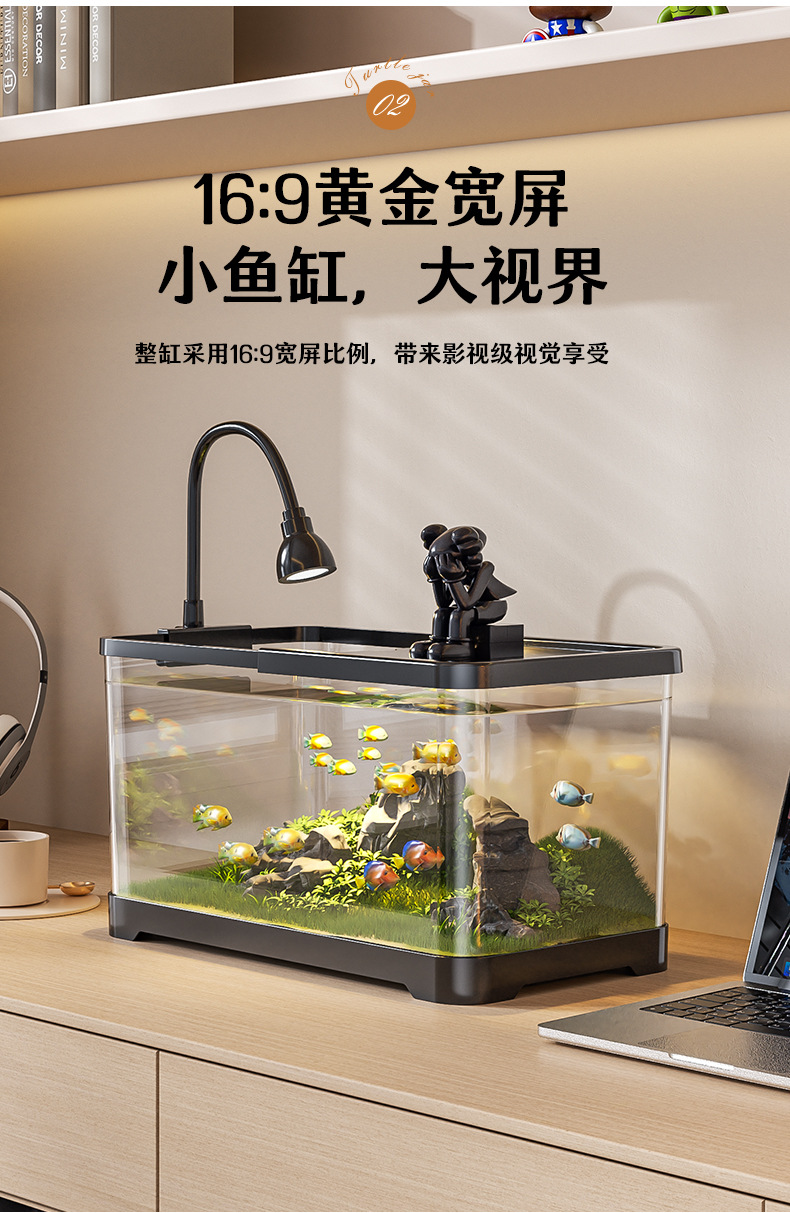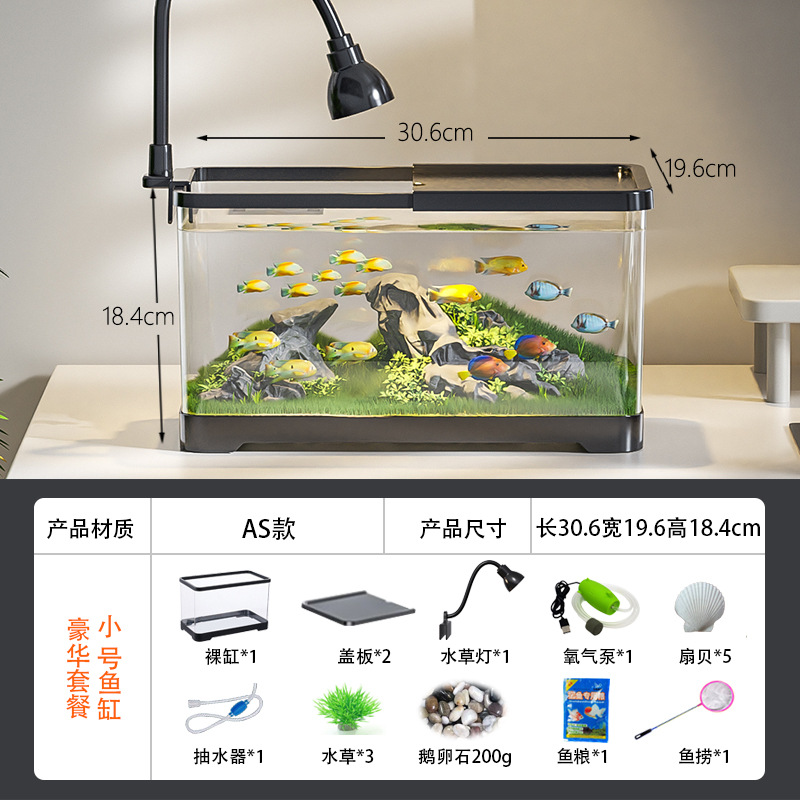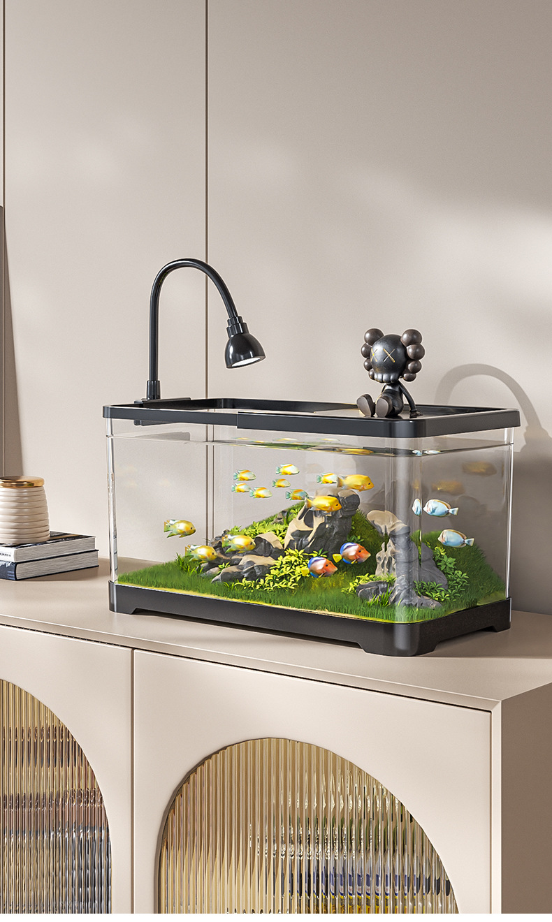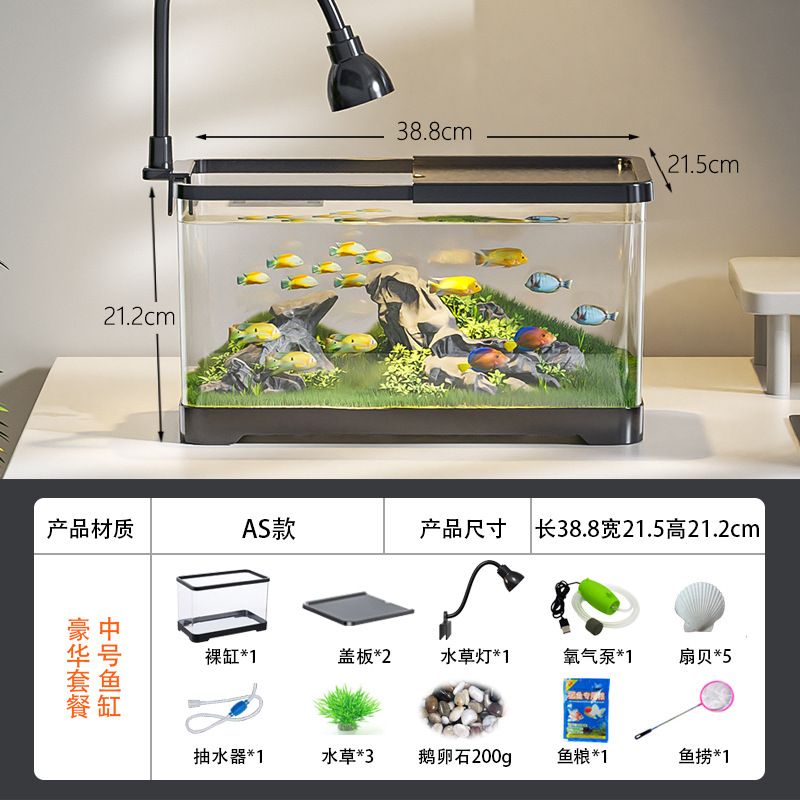 새로운 데스크탑 풍경 생태 어항 거실 발코니 거북이 육각 공룡 새우 특수 탱크 뚜껑 가정 소형