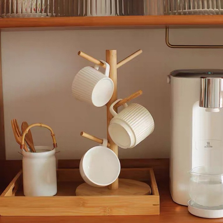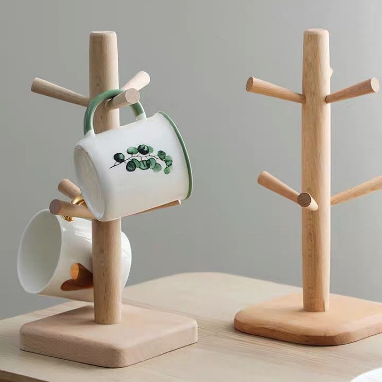단단한 나무 저장 랙 간단한 옷걸이 저장 랙 창조적 인 저장 랙 건조 커피 컵 찻잔 저장 랙