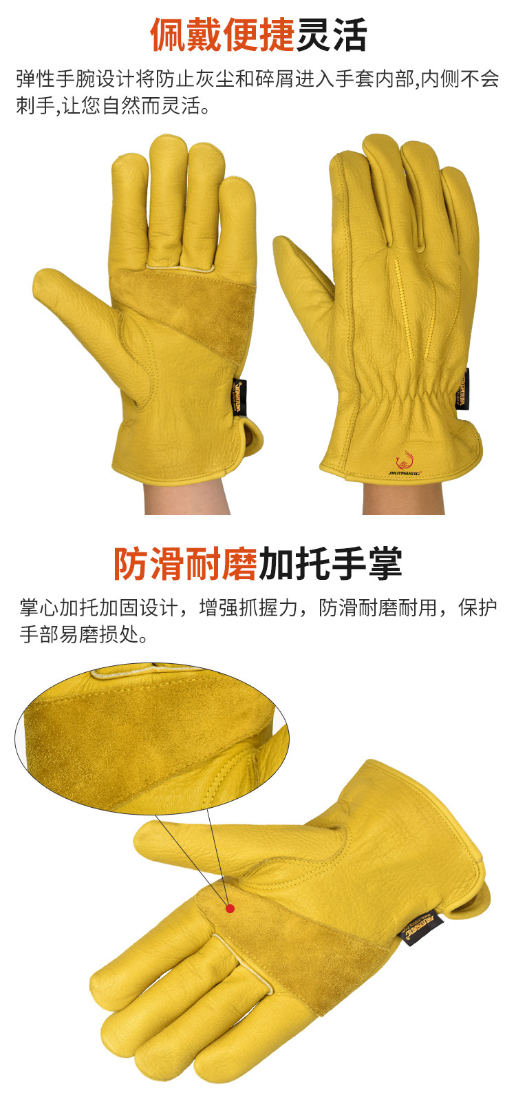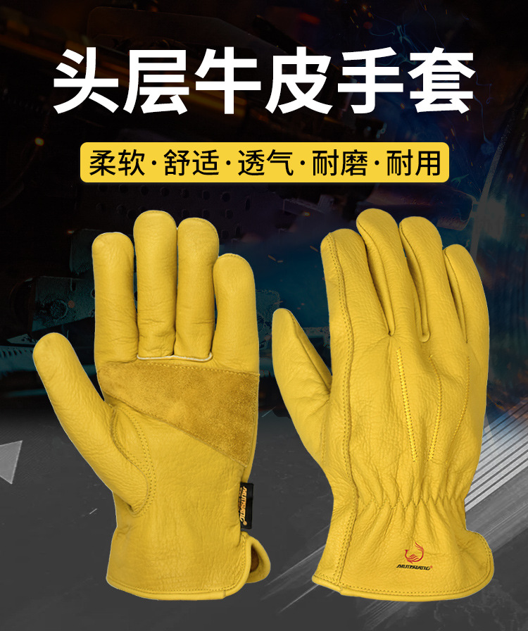 Mingshun 브랜드 용접 937 소 가죽 작업 단열 장갑 내마모성 난연 고온 내성 취급 기계 노동 보호 장갑스토어 가기