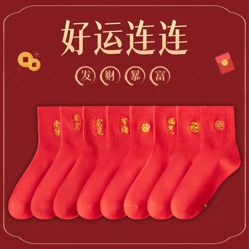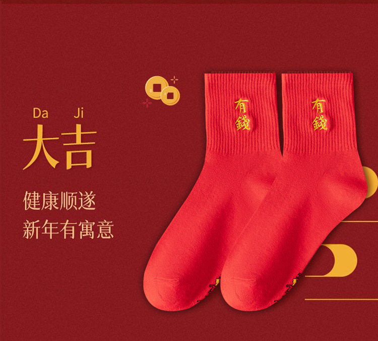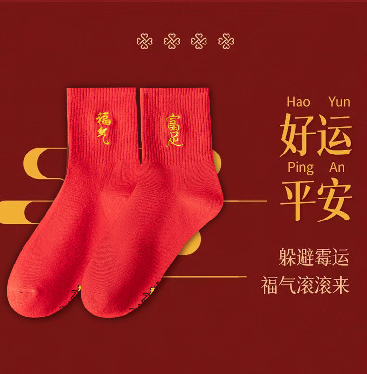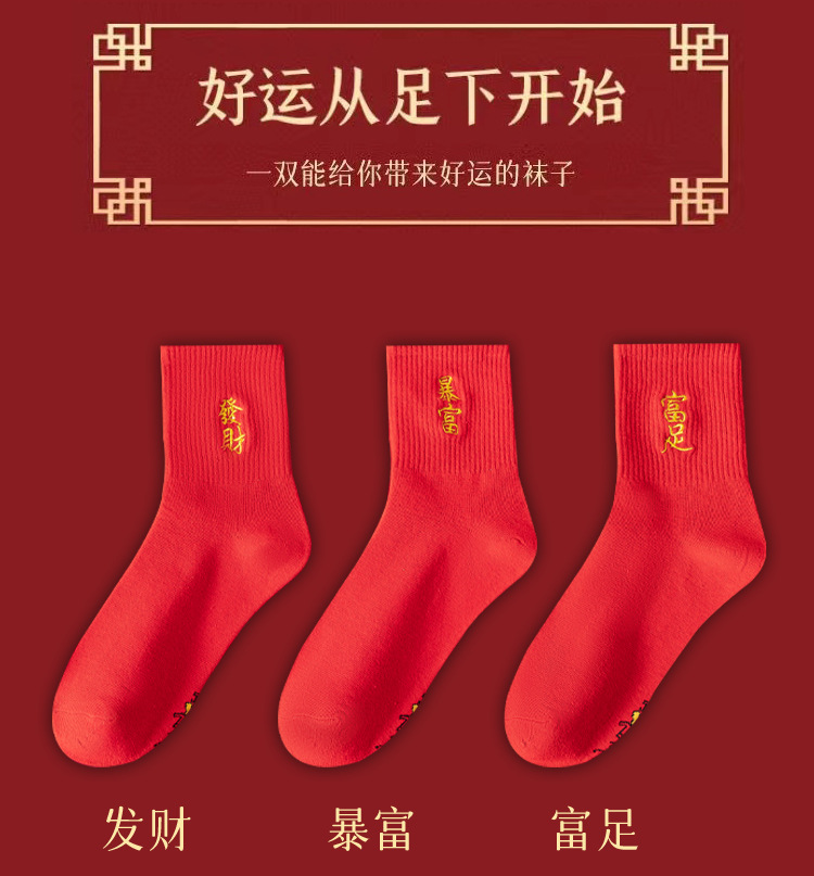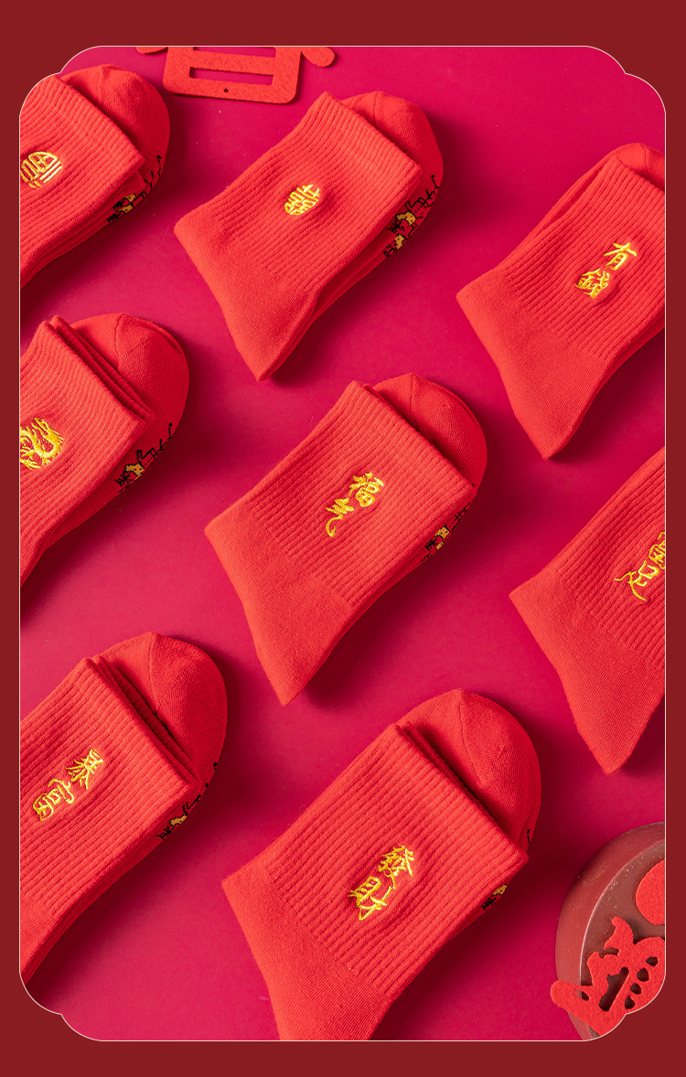 남자와 여자 커플을위한 수 놓은 빨간 양말 스포츠 웨딩 양말 선물 면 중간 튜브 양말 드래곤 년 2024스토어 가기