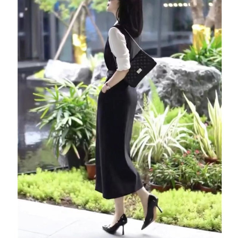 23571 다아이메이위안 2025 가을 신상 패션 화이트 셔츠 조끼 원피스 슬림핏 여성용스토어 가기
