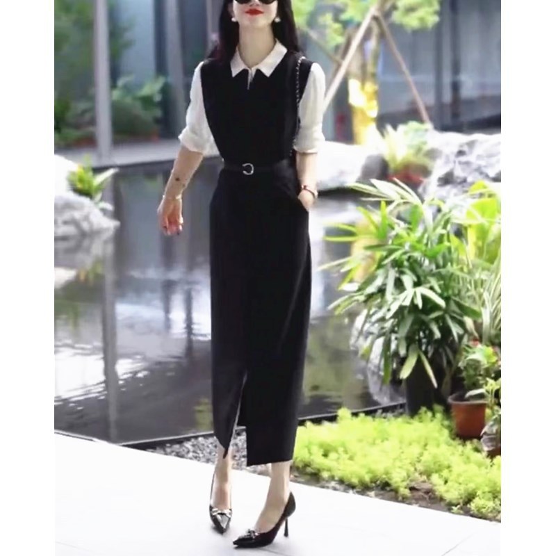 23571 다아이메이위안 2025 가을 신상 패션 화이트 셔츠 조끼 원피스 슬림핏 여성용
