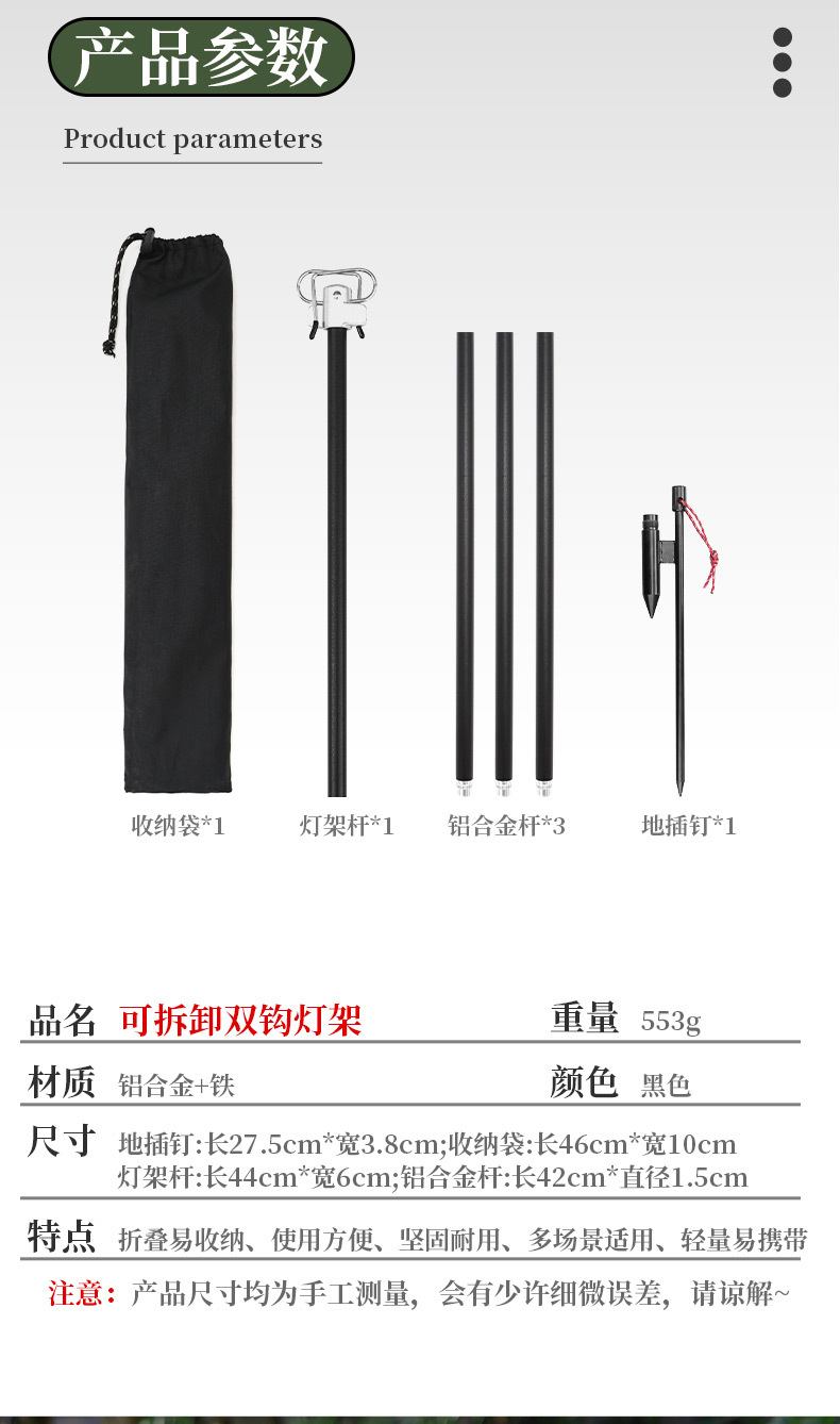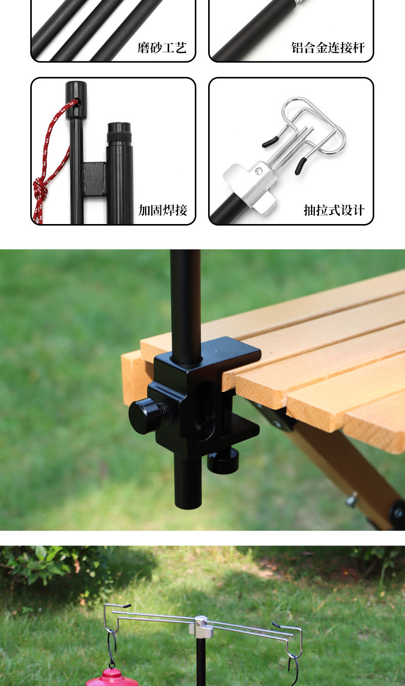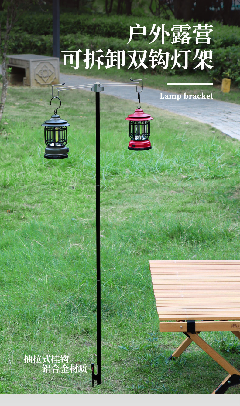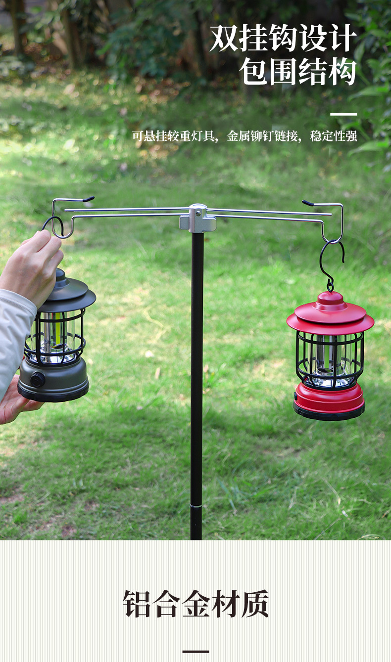 야외 접이식 램프 스탠드 알루미늄 합금 캠핑 브래킷 대담한 램프 폴 더블 후크 보관 더블 후크 행거 캠프 조명
